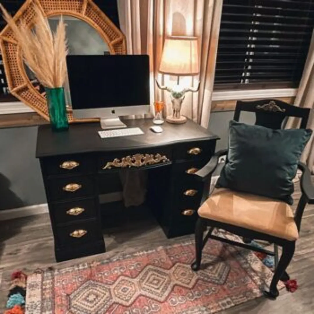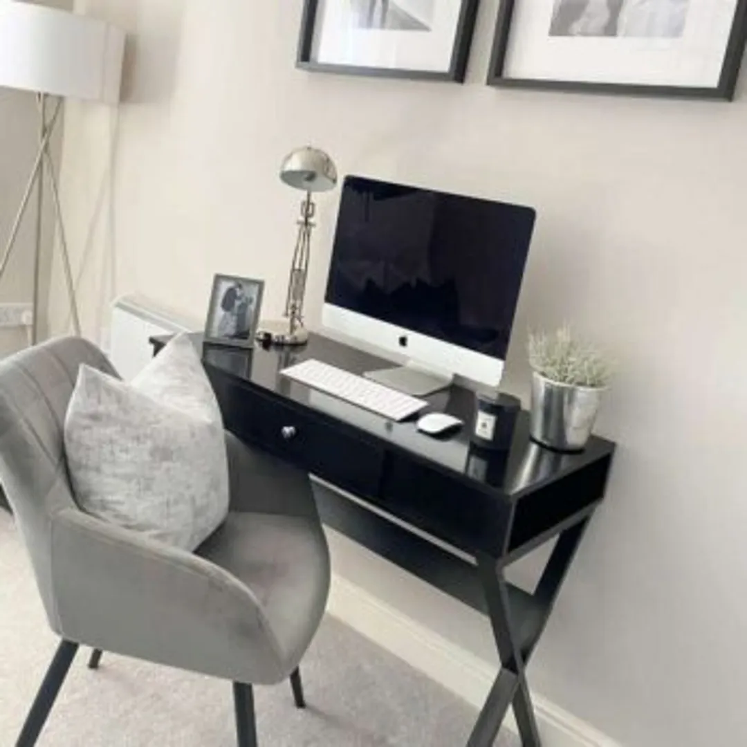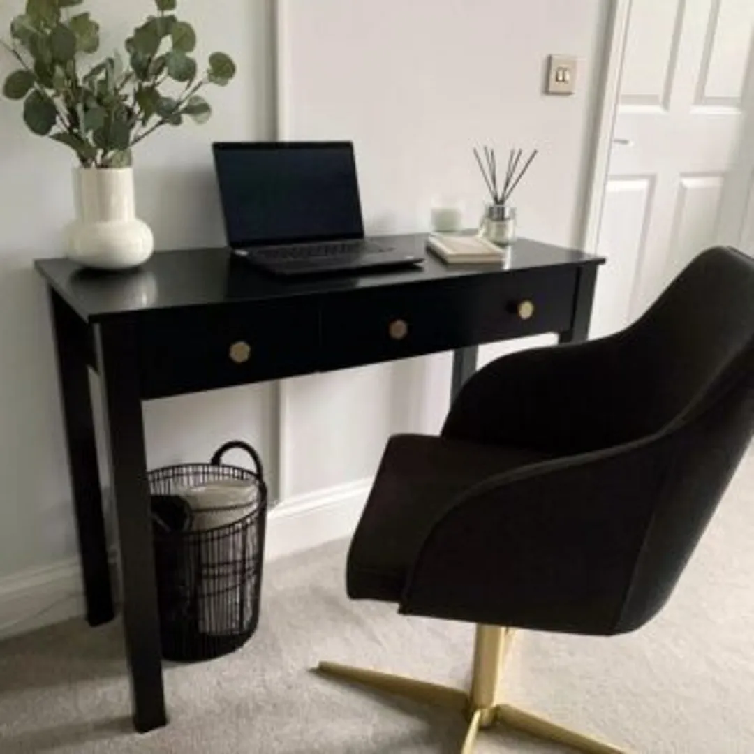 Комбинируйте черный стол с нейтральными цветами – белый создаст отличный контраст. Можно сделать домашний офис более теплым с помощью растений в горшках и элементов из натуральной древесины. Золотая фурнитура позволит легко создать атмосферу роскоши. Потратьтесь на бархатный или кожаный рабочий стул, чтобы сделать образ кабинета завершенным.