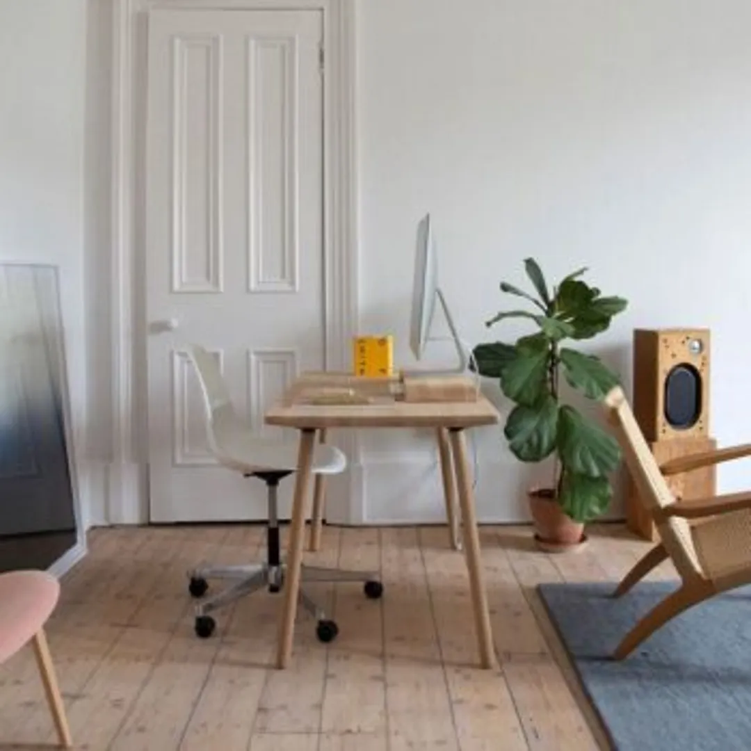 Создание рабочего пространства в минималистском стиле начинается со стола. Поищите стандартный письменный стол без каких-либо украшений. Держите его в чистоте, и пусть на нем не располагаются аксессуары – придумайте, как разместить принтер или другие крупные предметы отдельно, где-то неподалеку.