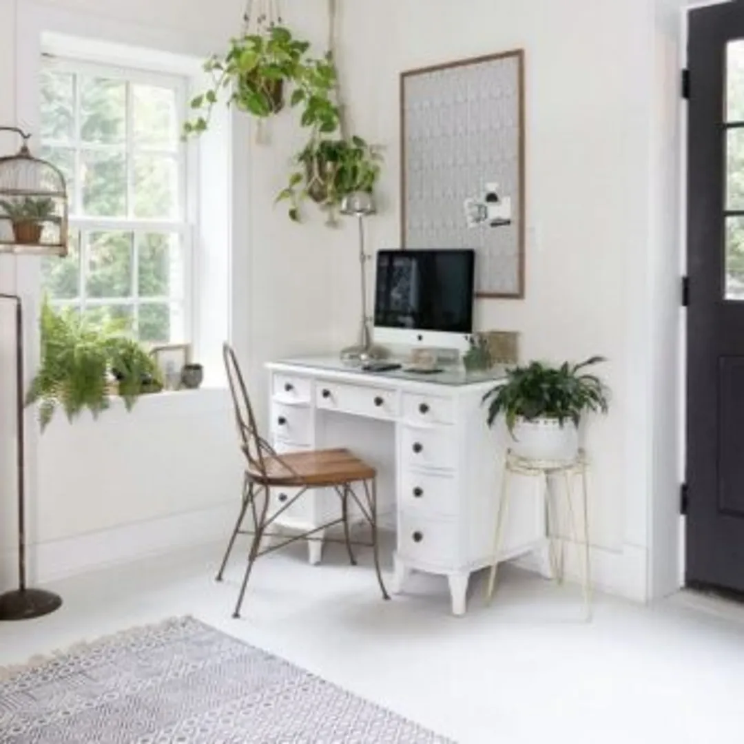 Если вы именно тот человек, который продуктивен в чистой рабочей обстановке, белый офисный интерьер – это то, что нужно. Сегодня легко найти белый рабочий стол в любом стиле. А если вы вдруг захотите увидеть его в другом варианте, все, что понадобится – немного краски.