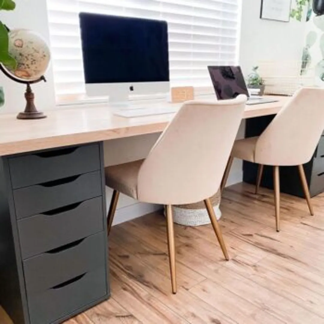 Выбирайте симметричный стол с большим количеством ящиков и шкафов. Если два человека делят домашний офис для работы, последнее, чего хочется – перепутать важные документы или вещи. Предотвратите организационные неприятности с помощью отдельных хранилищ и ярлыков.