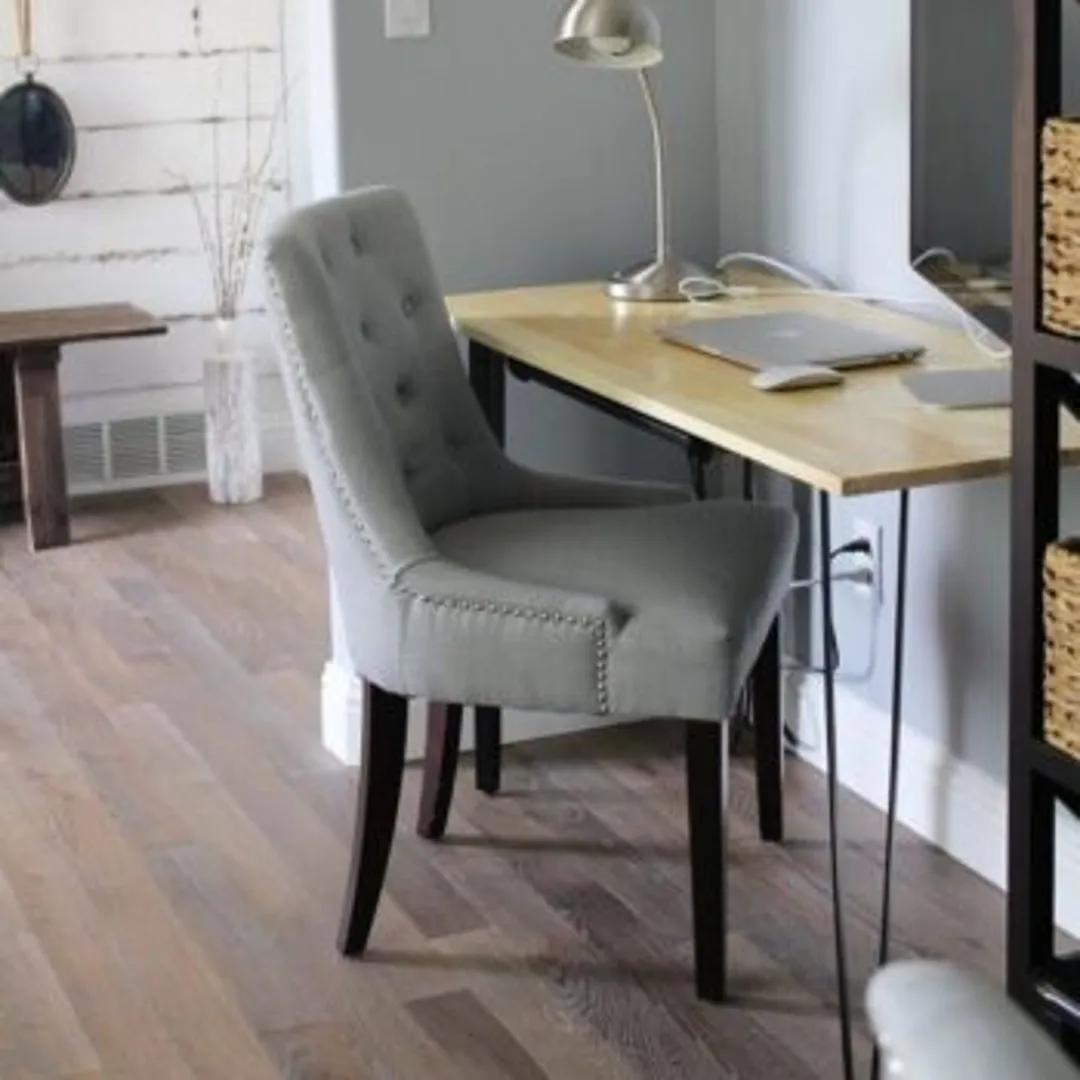 Если вам нужна элегантная или индустриальная версия интерьера в деревенском стиле, обратите внимание на отделку рабочего стола. Натуральная древесина – лучший материал для стола в данном контексте. Но, лучше выбирать мебель с выбеленной или искусственно состаренной отделкой.