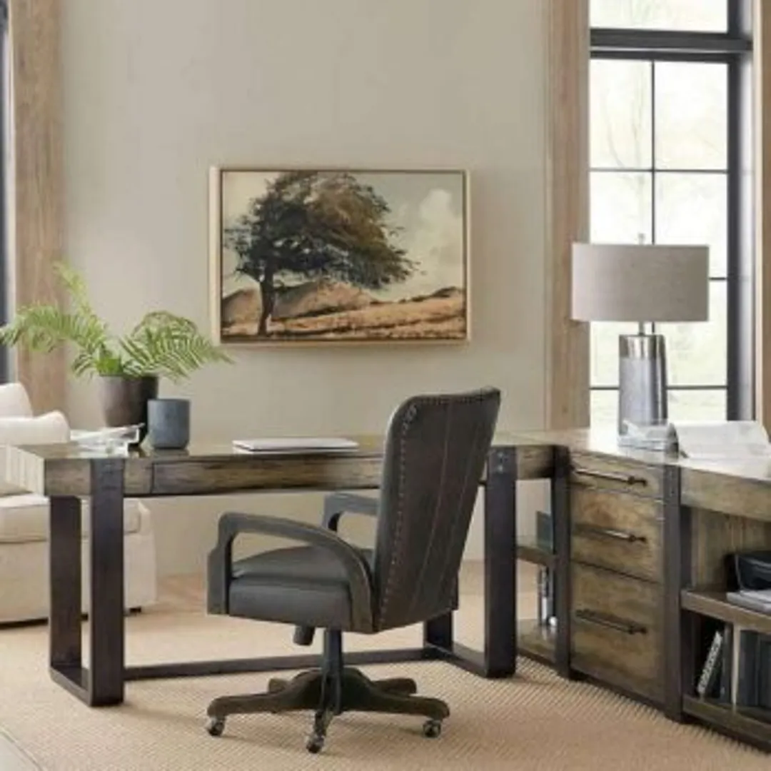 Стол в стиле «Рабочая станция» включает в себя все, что может понадобиться, и все эти предметы собраны в одном месте. В случае домашнего офиса это обычно означает вещи типа телефона, принтера и как минимум одного компьютера.