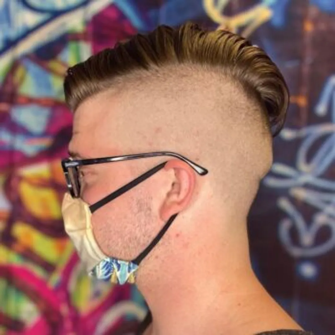 Для стрижки вам следует начать с обрезания волос по бокам и на затылке до короткой длины. Оставьте немного прядей сверху. А если потребуется резкий контраст между волосами на макушке и по бокам, сделайте отдельную модель, когда затылочная часть и бока будут полностью сбриты.