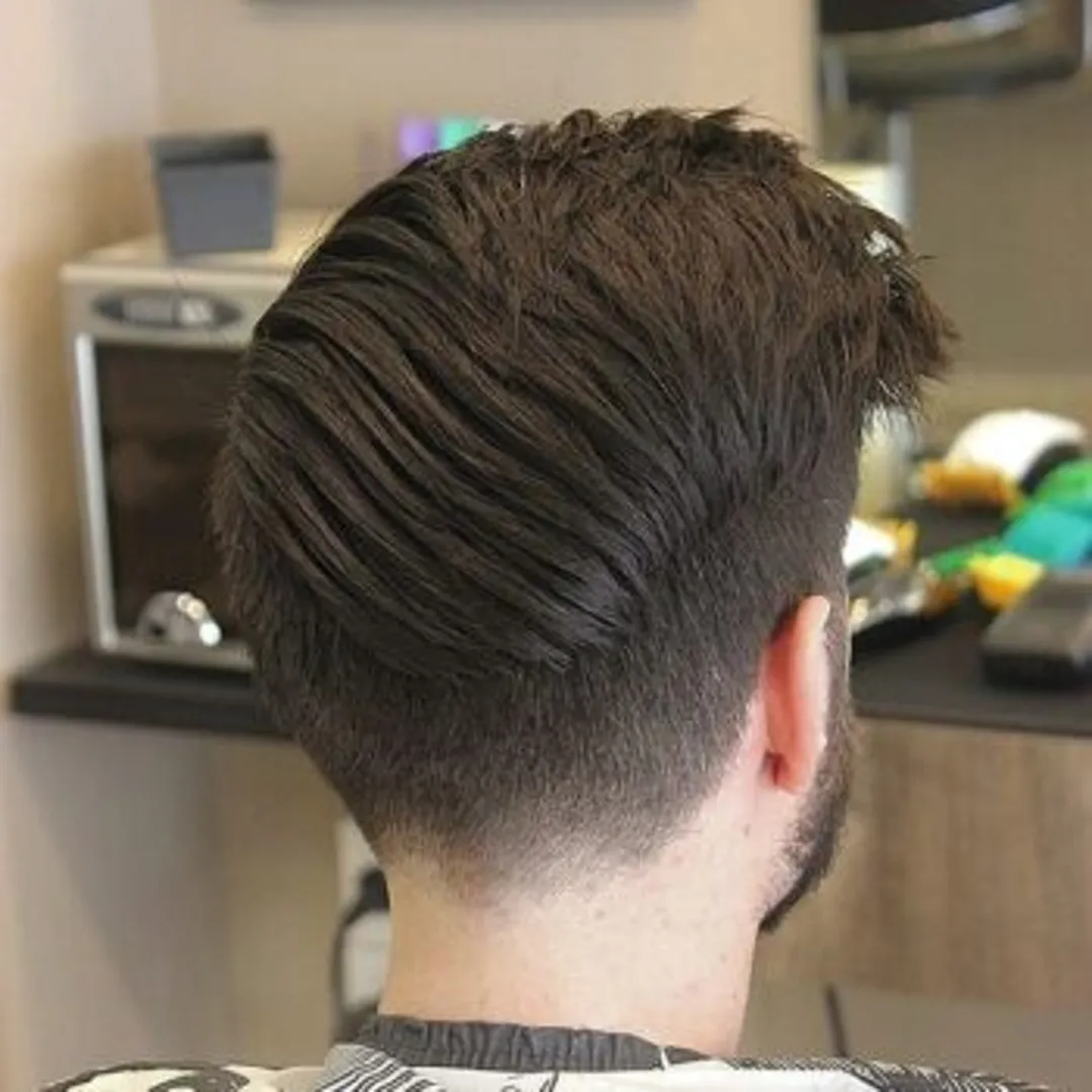 Верхушка должна оставаться немного длиннее по сравнению с волосами на затылке и по бокам, чтобы две длины не слились воедино.