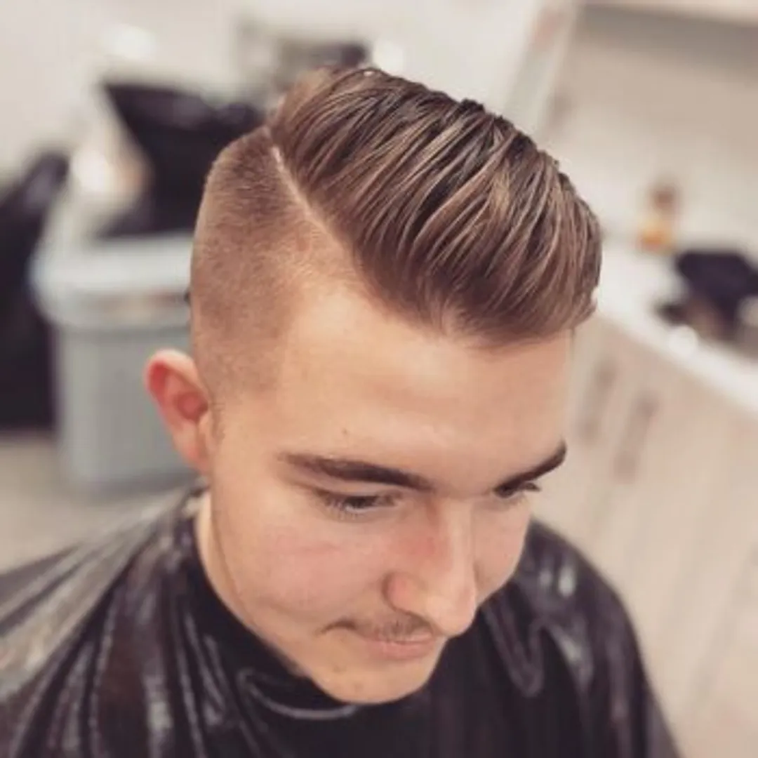 Ни для кого не секрет, что объемная стрижка на бок – одна из самых популярных трендов для мужчин в этом году. Если вы не хотите состригать объемную верхнюю часть прядей, то стрижка с косым пробором станет для вас оптимальным вариантом.