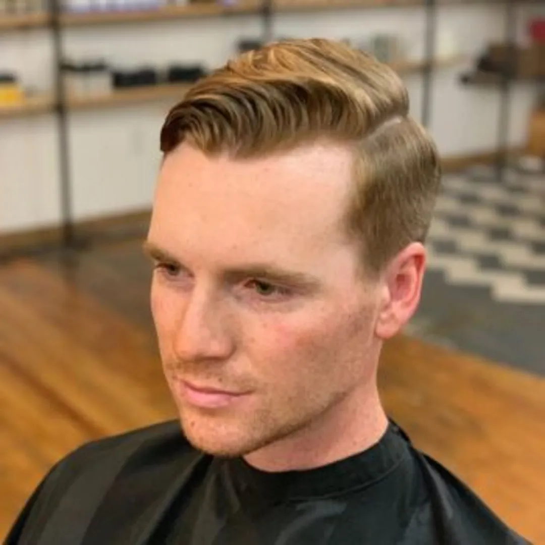 Отличный образ для парней, желающих смягчить свою внешность. Добавление челки и создание бокового пробора помогут вам добиться мягкого и очаровательного внешнего вида.