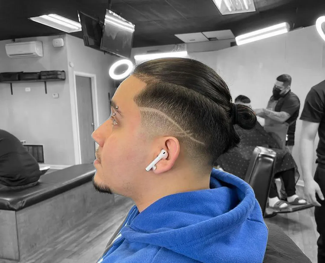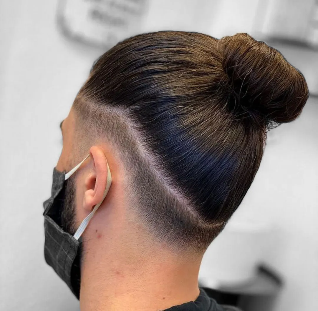 Завершите образ Андеркатом, но волосы должны быть коротко подстрижены, чтобы сделать пучок более заметным. Уверенные в себе парни могут использовать палочку для волос или даже несколько.
