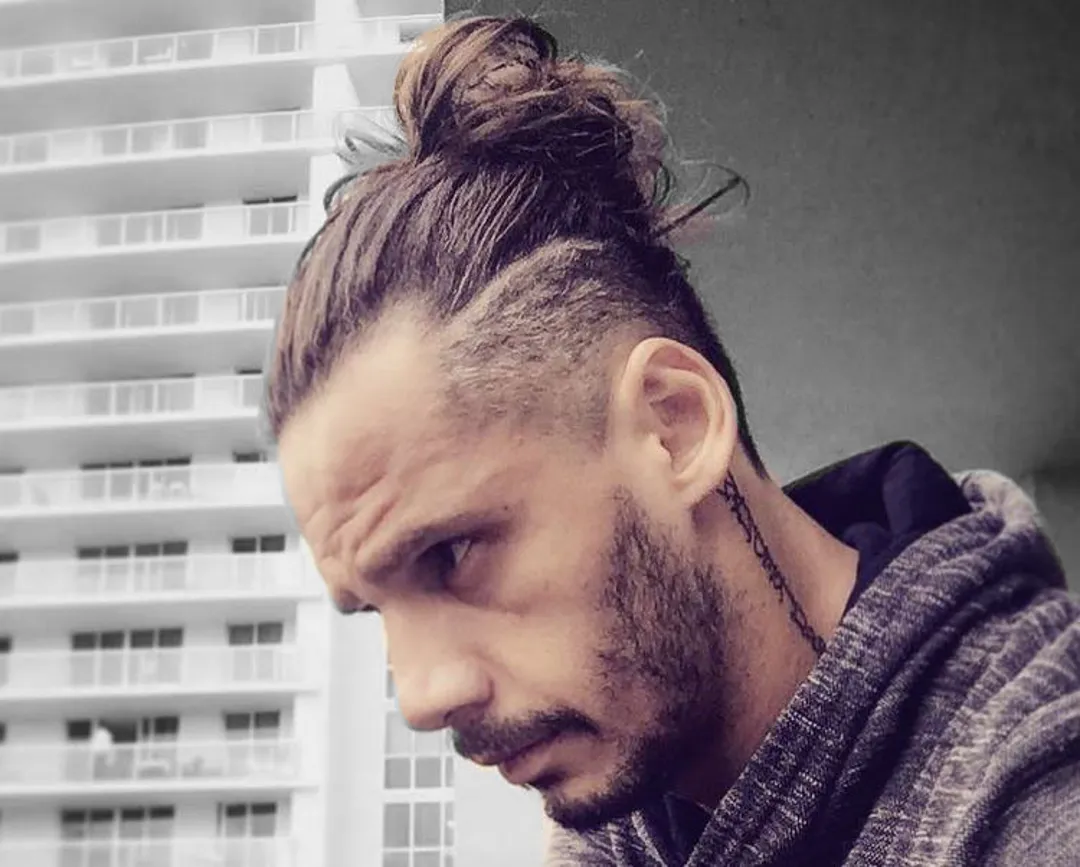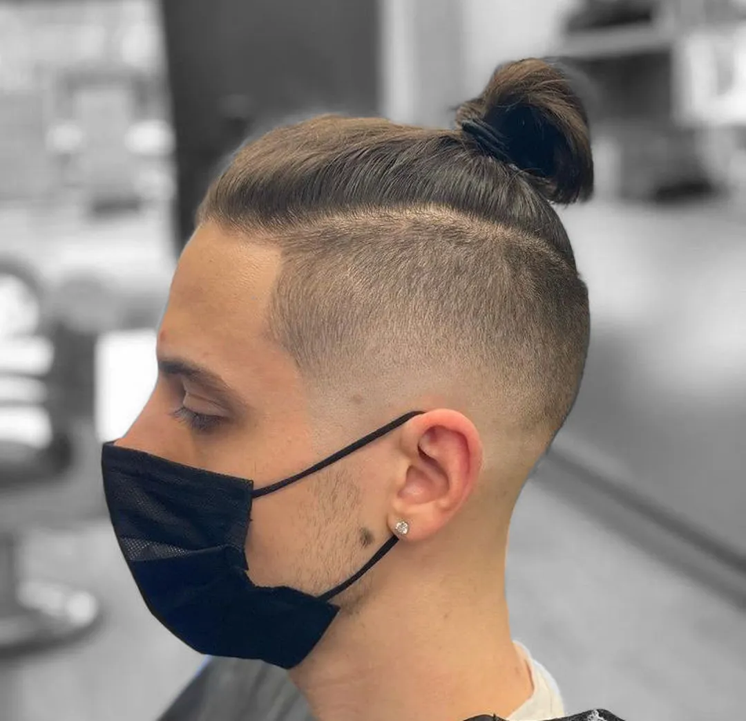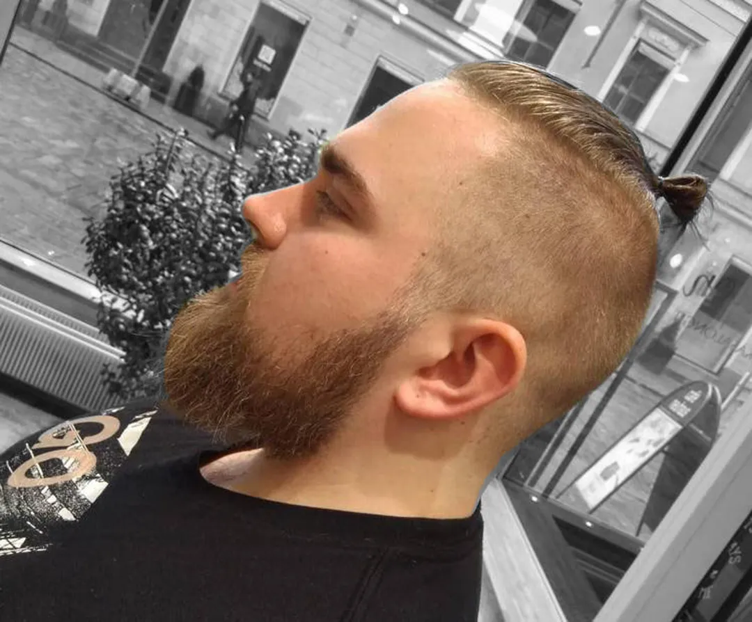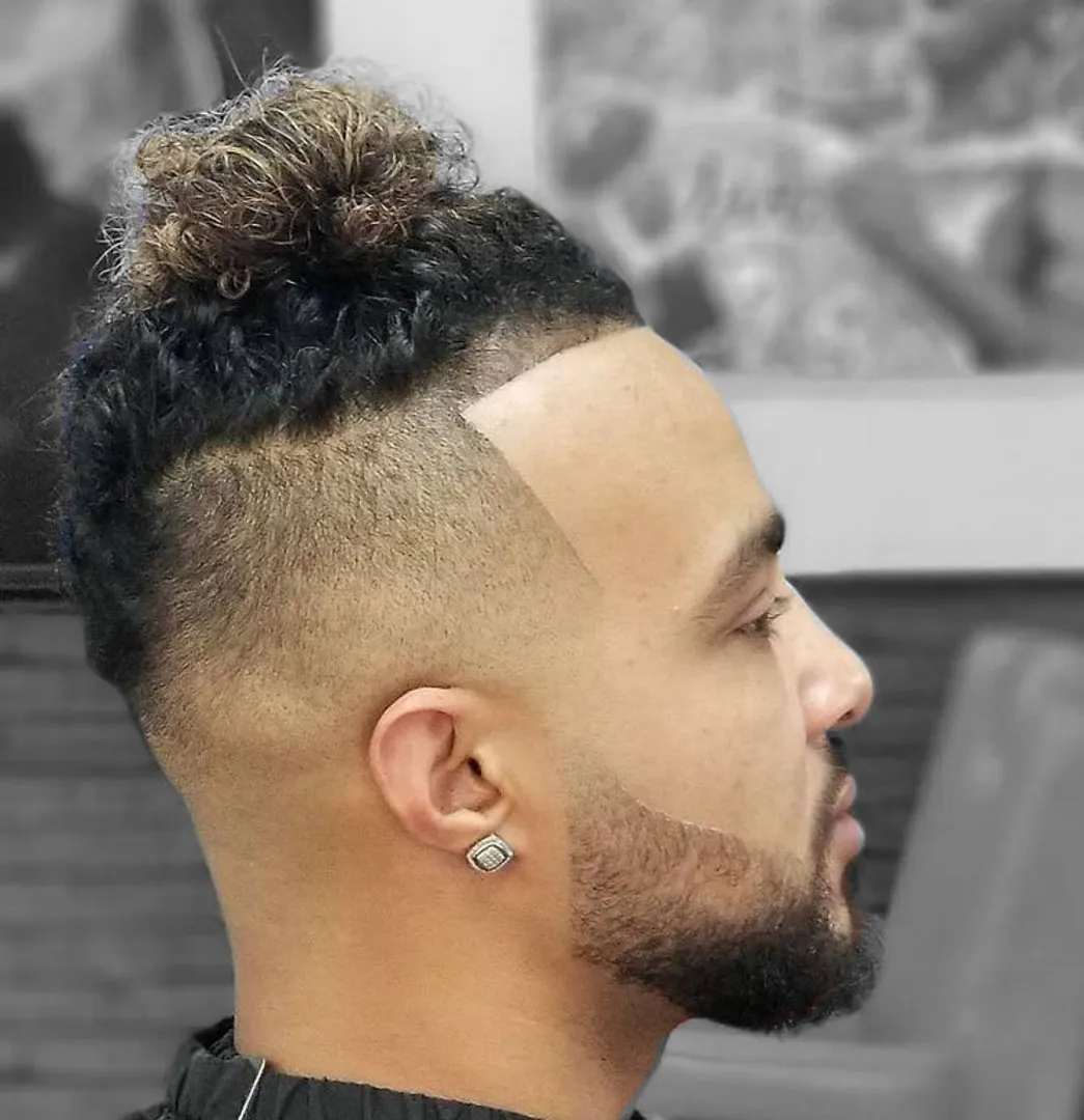 Затем причешите длинные волосы на макушке и закрепите их в пучок с помощью резинки для волос. Если вы хотите сделать высокий фейд не таким заметным, вы можете сочетать свой стиль со средней бородой. Однако, если вам нужен более аккуратный вид, вы можете сбрить бороду.