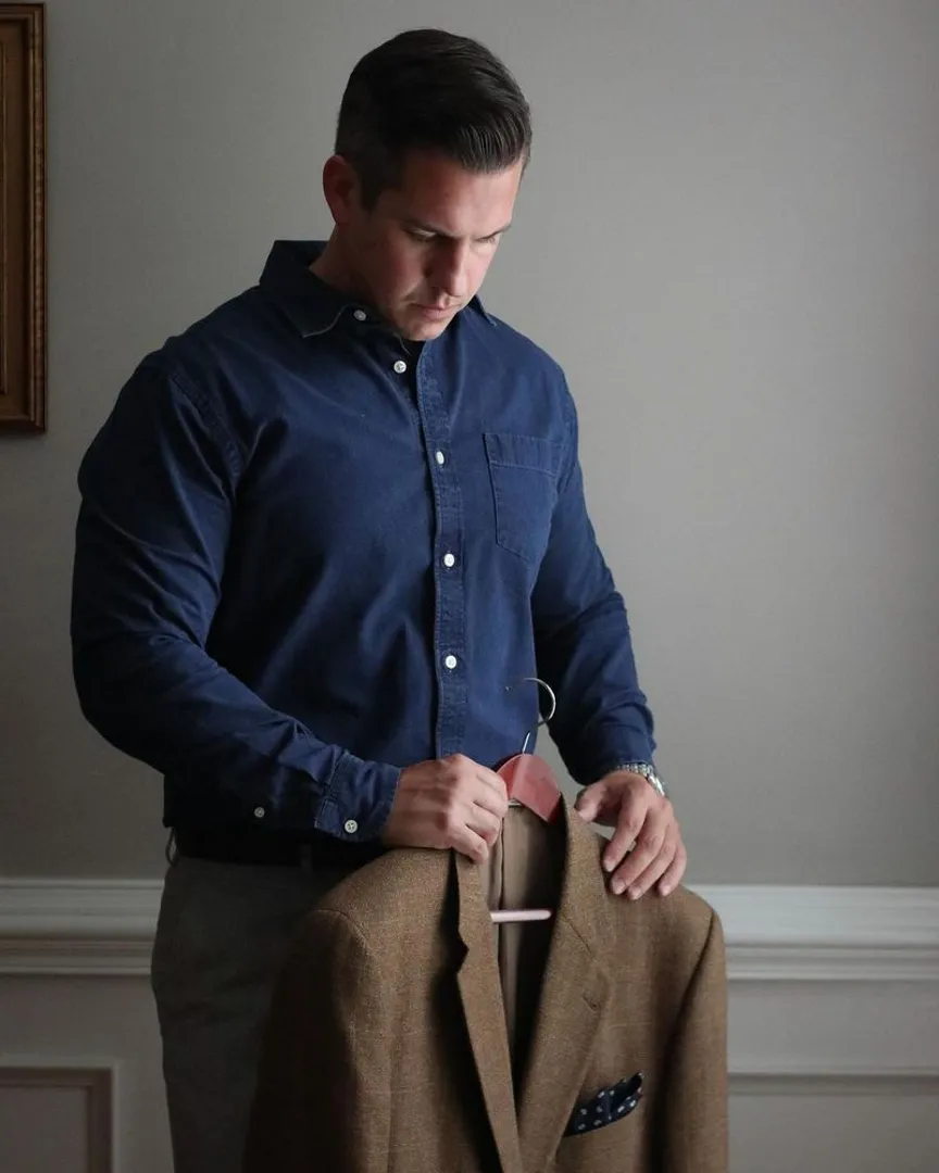 Если вы из того типа парней которые на самом деле не «умничают», пусть оксфордская рубашка для вас станет более деловой альтернативой, которая на пару ступеней ниже по шкале формальностей.