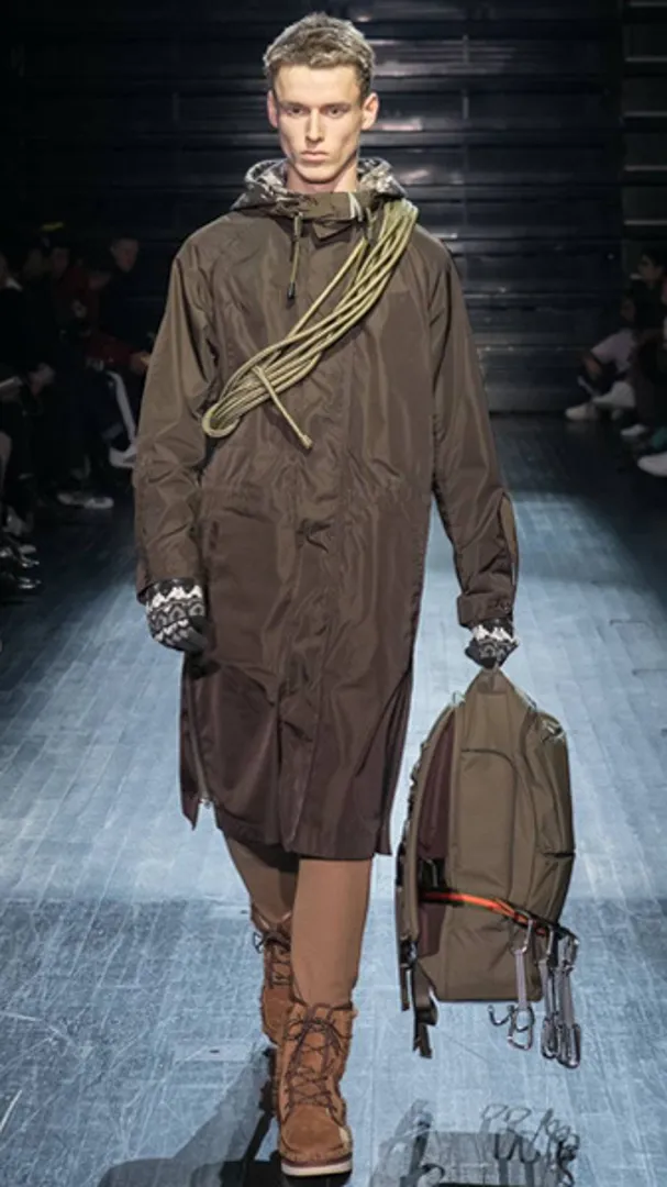 Немногие могут противостоять такому тренду, когда мода и функциональность сговариваются на создание предметов, которые одновременно выглядят и чувствуют себя прекрасно. Именно поэтому в этом сезоне техническая одежда (стиль Теквир) обладает крепкими практичными когтями, глубоко вонзившиеся в мужские шкафы. На практике это означает большое количество неординарных анораков (серьезно, это возможно), сверхпрочных походных ботинок и сумок, которые продуманно оставляют руки свободными.