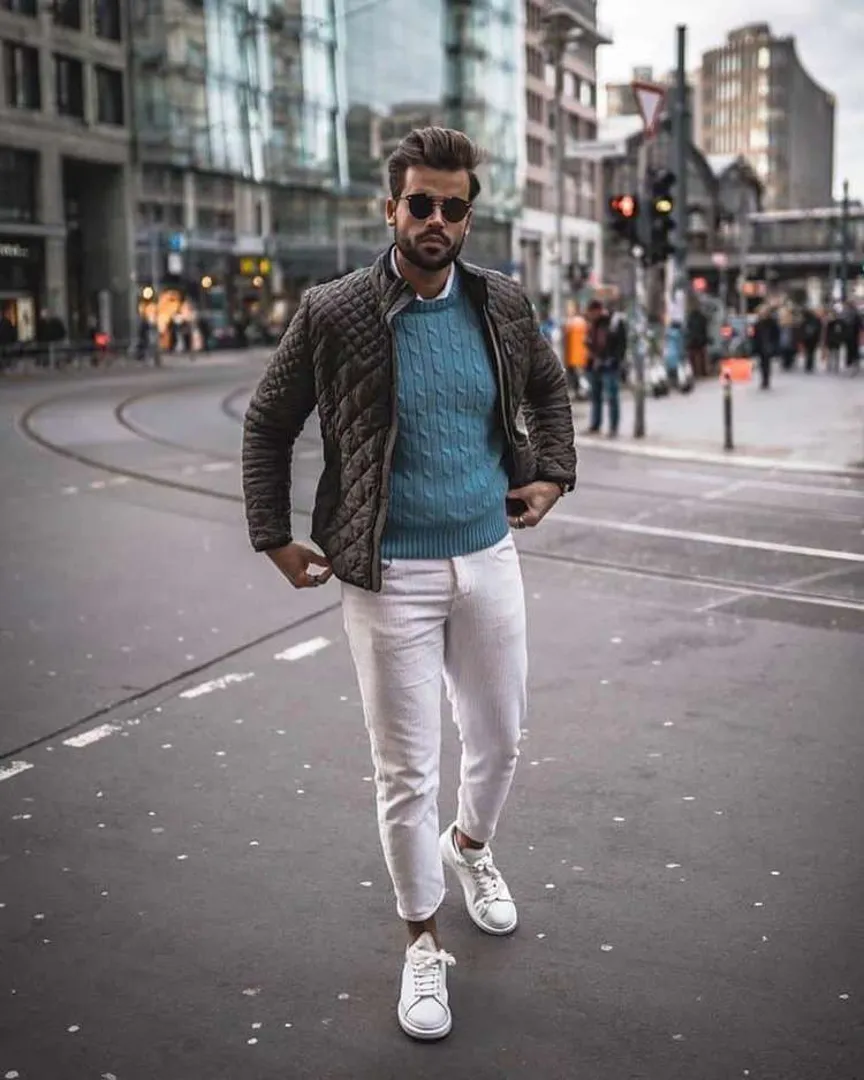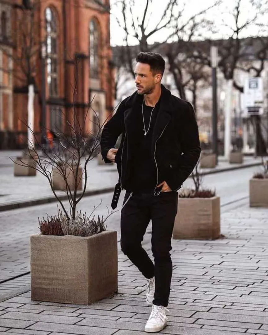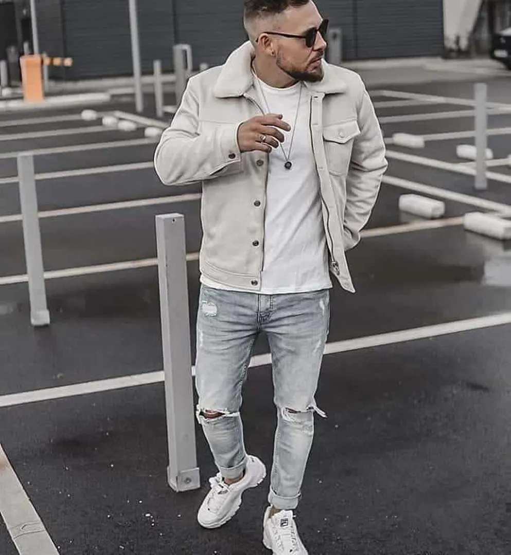 Чтобы создать уличный стиль в весеннем образе, включите в свой гардероб такие повседневные вещи, как брюки-карго, жилеты, кожаные куртки и кроссовки. Другими фаворитами являются однотонная шапка, простые украшения или часы. Если вы хотите добиться полностью уличного стиля, неплохо сочетать свою одежду с простой стрижкой фейд и/или аккуратно подстриженной бородой.