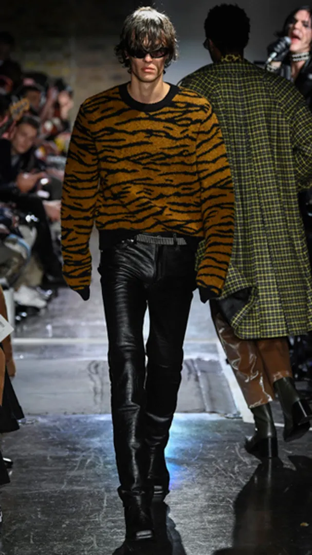 Как и музыка, рок-образ существует в спектре стереотипов. Самый легкий путь лежит через черные джинсы и кожаную куртку, но в этом сезоне черный костюм с массивными ботинками дерби – лучший способ присоединиться к потоку фанатов группы. Или просто добавьте в свой стиль принт с изображением животного на пальто. Если вы чувствуете себя более смелым, сделайте выбор в пользу рубашки с леопардовым узором.