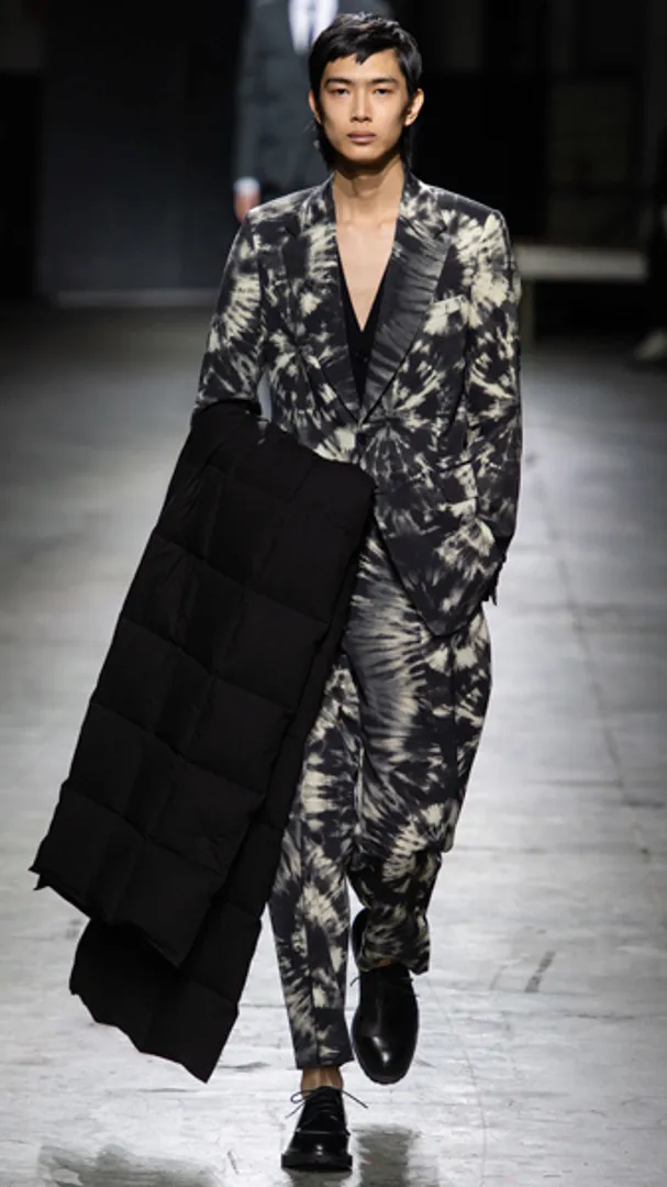 Вполне возможно, что в этом сезоне костюмы официально вернулись. Ни одна коллекция не была бы полной без хотя бы одного пошива (в идеале пяти или шести), и в Louis Vuitton, Dior и Celine показали, что в их моделях присутствует уникальный индивидуальный элемент, присущий только им. Мы увидели похоронные костюмы (Prada, Ermenegildo Zegna), узорчатые костюмы (Berluti, Dries van Noten) и неожиданный избыток бархатных (Ralph Lauren, Dolce & Gabbana, Gucci), как раз к сезону вечеринок.