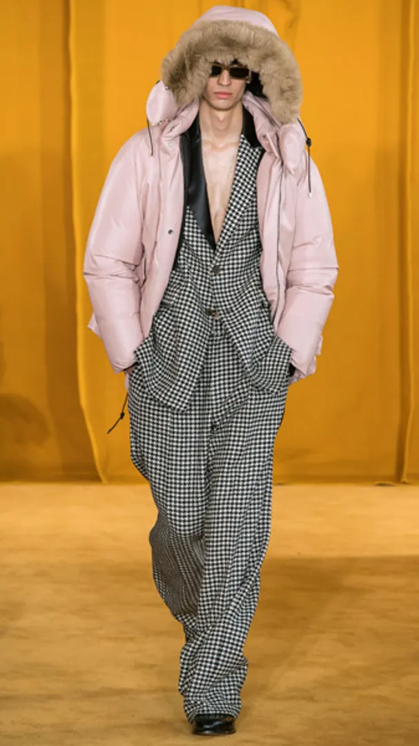Зимняя мужская одежда полностью выставила напоказ свою неординарную сущность. В нынешнем сезоне, все что считалось нарушением правил и показной роскошью, бурлившие в течение последних пятидесяти лет, разразились карнавалом цветов, принтов и роскошных тканей.