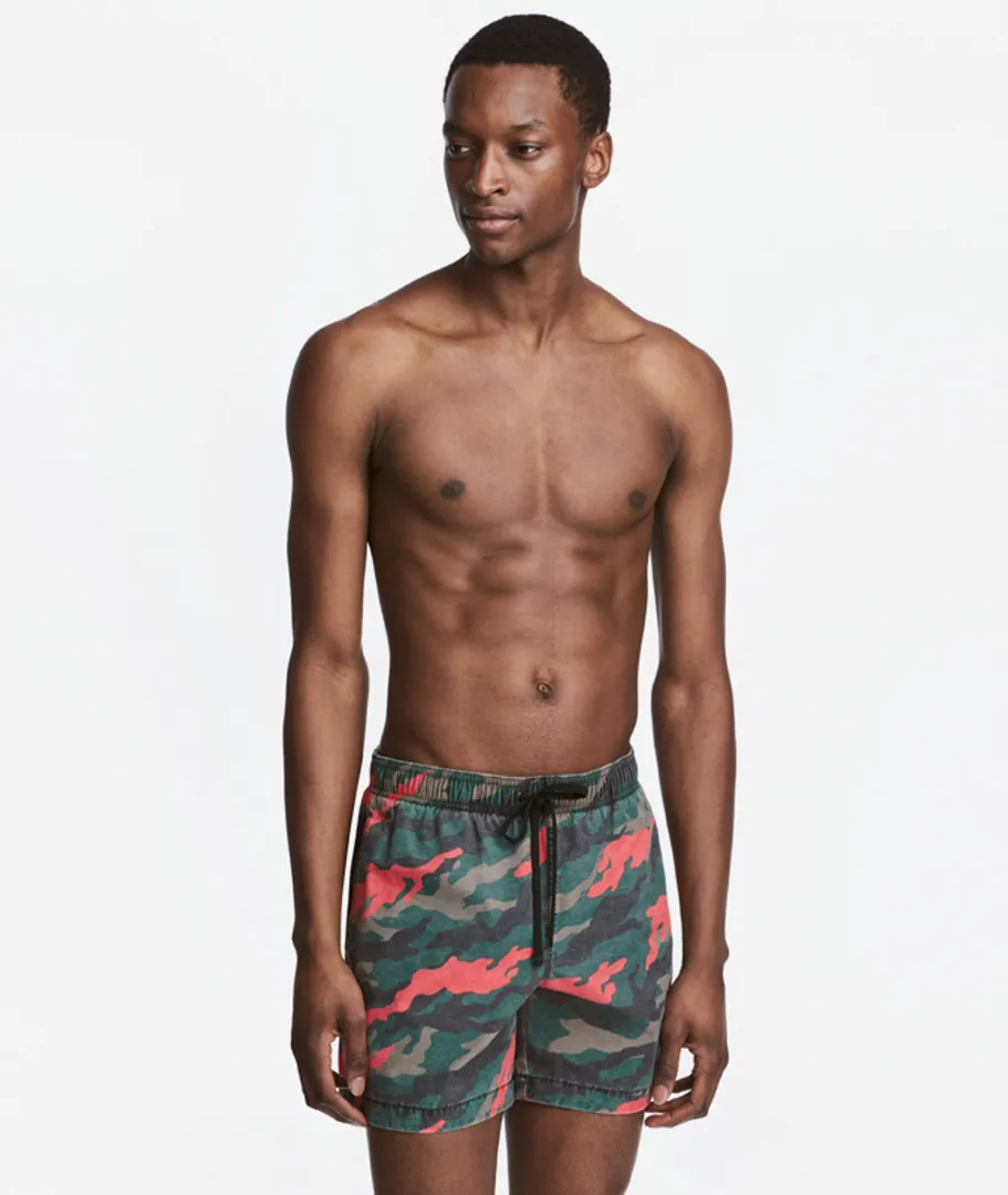 Образ в стиле милитари был одним из самых распространенных тенденций последних десятилетий, и теперь снова будет штурмовать пляжи. Идеально, для тех, кто, раздевшись до шорт, чувствует себя немного уязвимыми, зачисление в вооруженные силы добавит немного мужественности даже самым скромным из плавательных шорт.