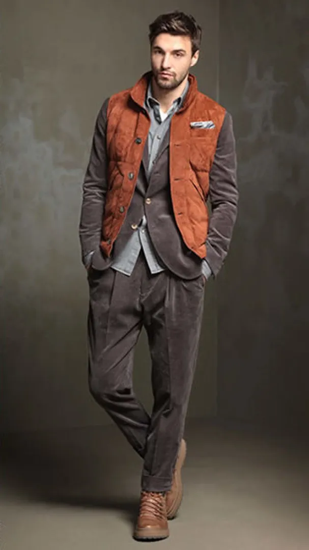Выберите оттенок или стиль 1970-х годов, но не оба одновременно. Медные, вельветовые брюки «клёш» лучше всего отложить на хранение для карнавальных костюмов. Эксперты мужской моды назвали выжженный апельсин «новым нейтральным» цветом, что означает хорошее сочетание с зимними стандартными тонами: с черным, темно-синим, серым и белым.