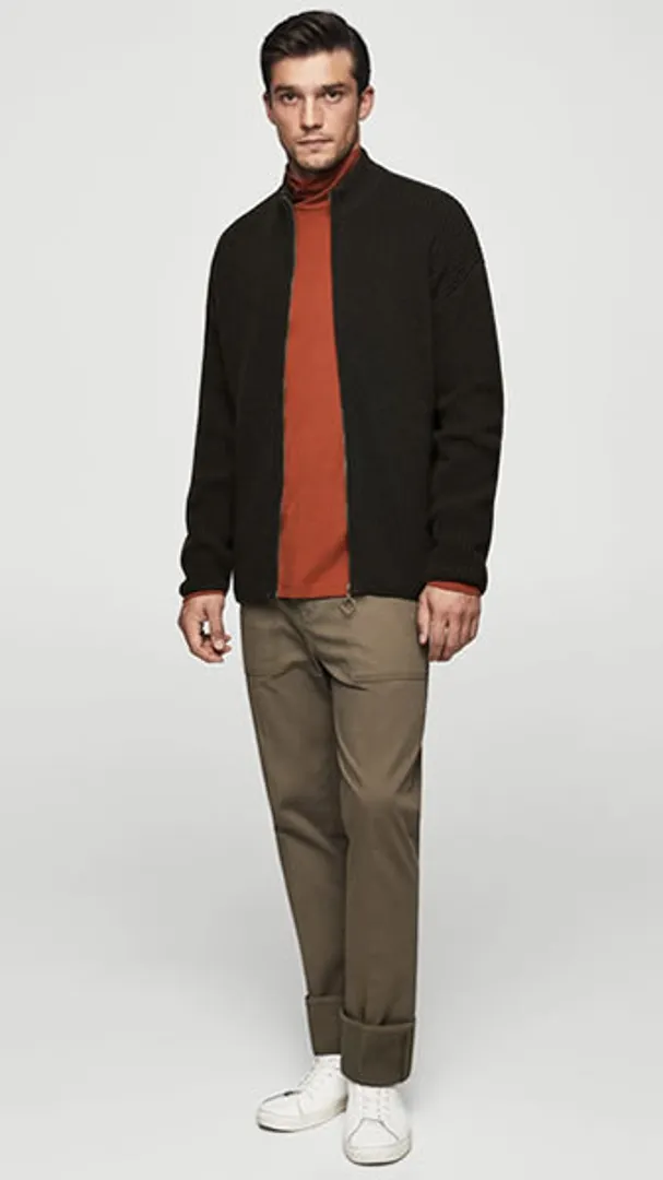 Обратите внимание на умеренность шикарных предметов. Брюки цвета хаки — это выигрышное сочетание с другими приглушенными оттенками коричневого, серого и кремового, в то время как офисные брюки будут работать с плотным трикотажем и массивными туфлями дерби.