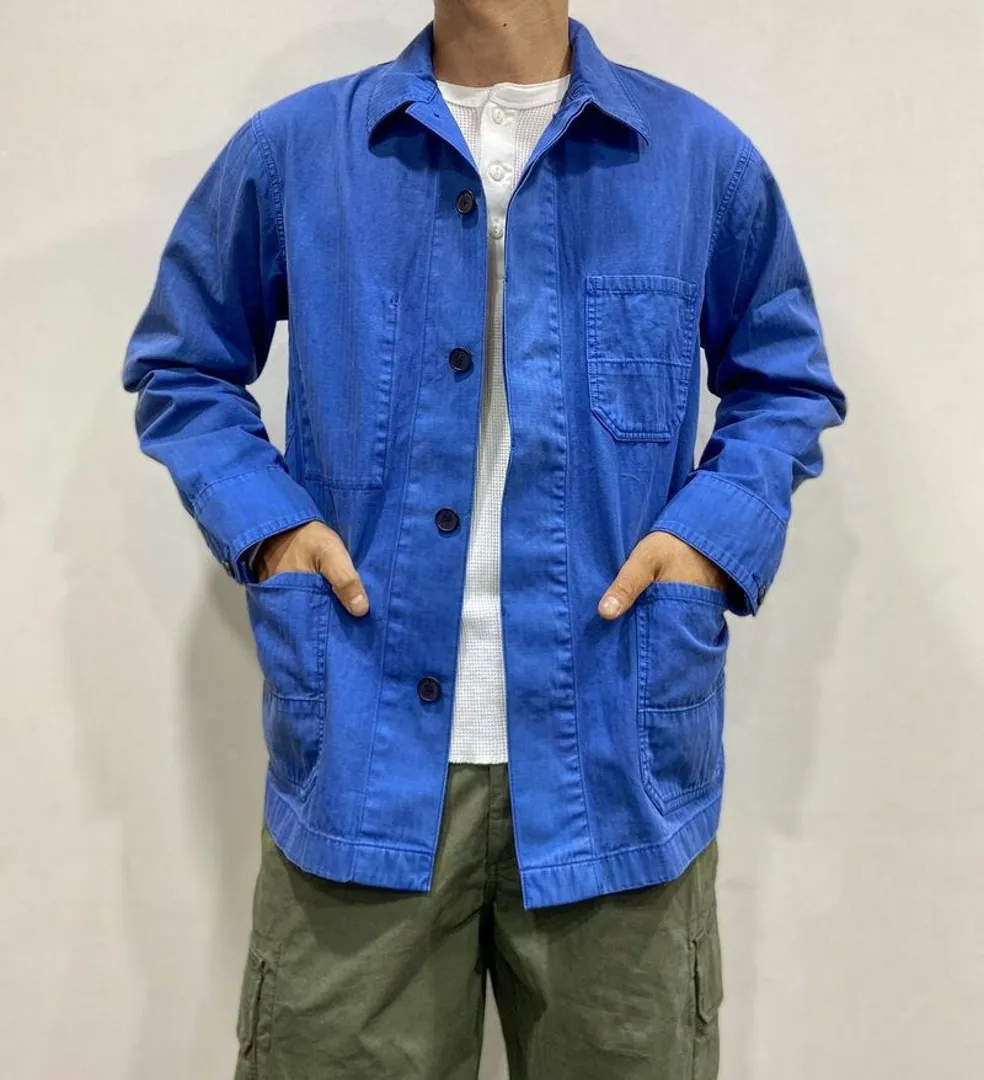 Прародитель рабочих курток, французский «bleu de travail» установил планку относительно больших карманов и пуговиц еще в конце 1800-х годов. Изначально она была частью полного комплекта комбинезона цвета индиго для фабричных рабочих – «рабочий блюз», служивший отличительной чертой тех, кто работал в цеху, от их боссов в белых рубашках, – именно эта легкая, но прочная куртка стала классикой повседневной мужской одежды.