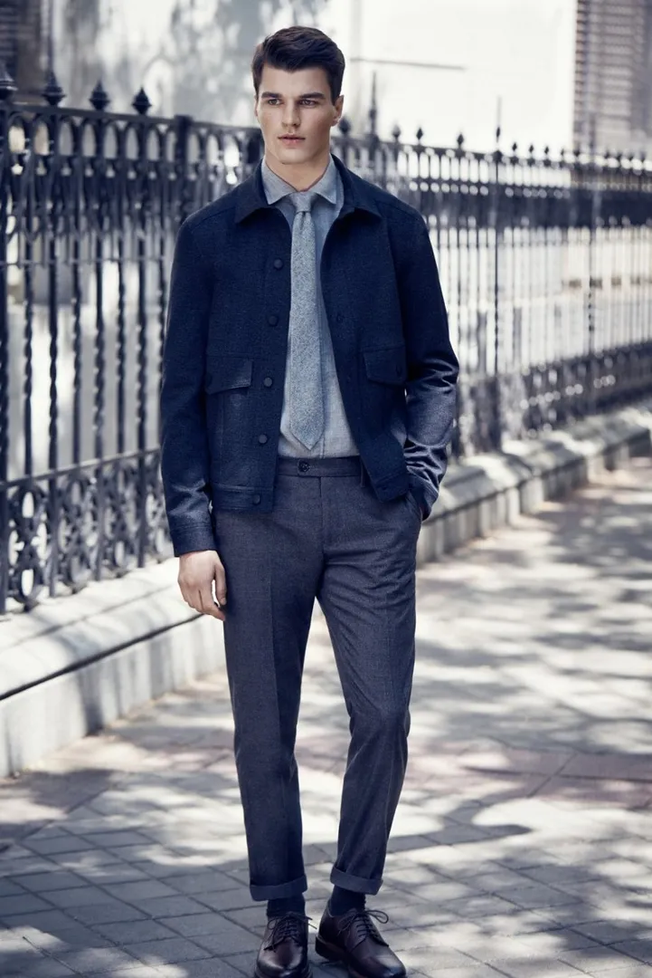 Одним из надежных приемов, на который можно смело положиться, является «умное» начало и замена одного элемента на что-то повседневное – джемпер с вырезом вместо рубашки, кроссовки вместо Дерби, или обычный верхний слой вместо пиджака; рубашка и галстук под ним остаются нетронутыми.