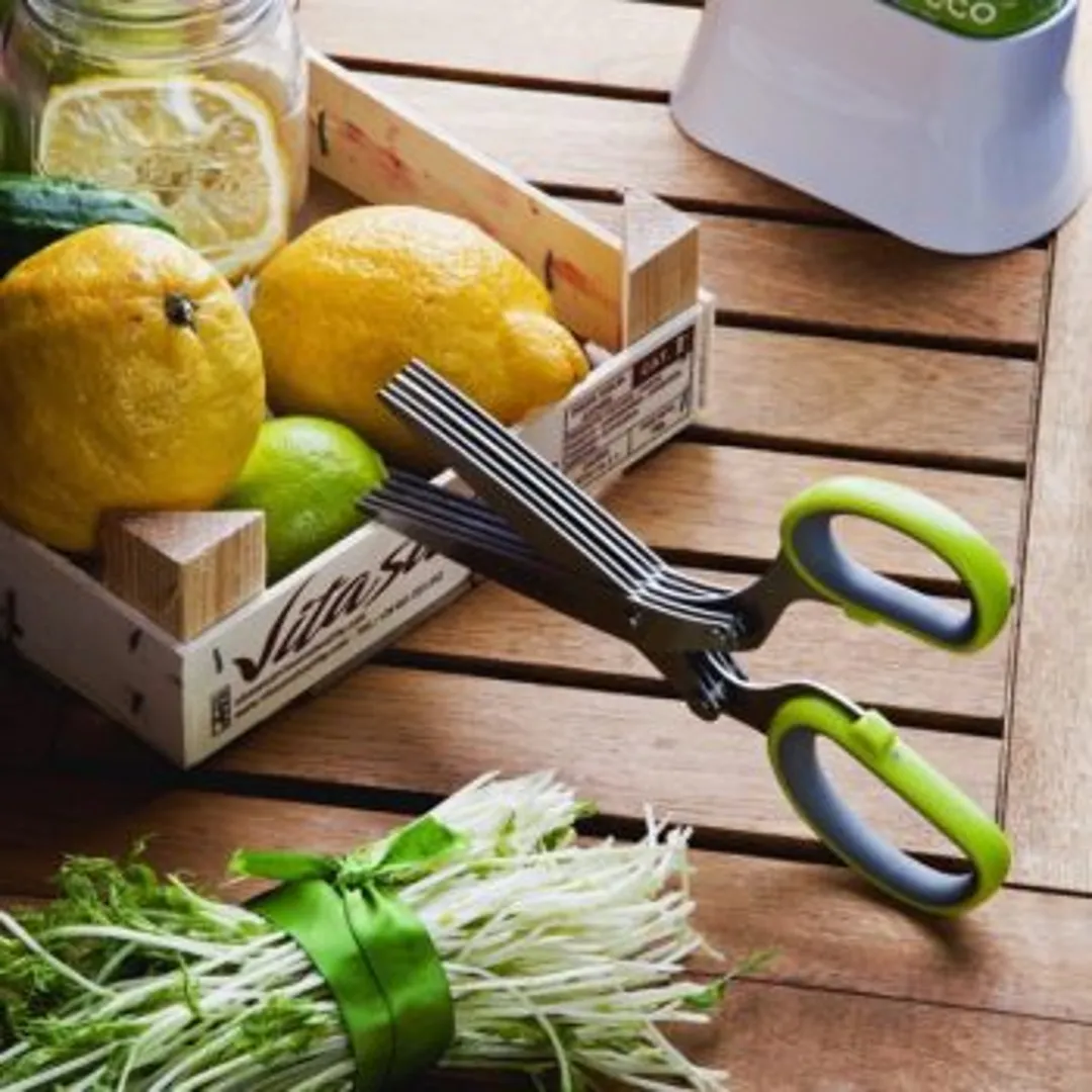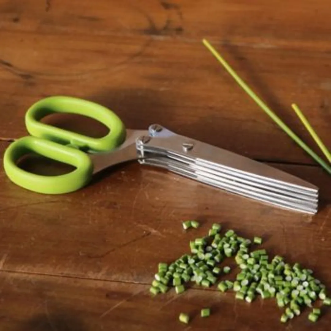 Если вы не натренированы под руководством Гордона Рэмси, то нарезание лука со скоростью света не рекомендуется. Как знают все неопытные повара, вам следует вместо этого использовать ножницы для зелени. Пять наборов стальных лезвий сэкономят вам много времени (и пальцев).