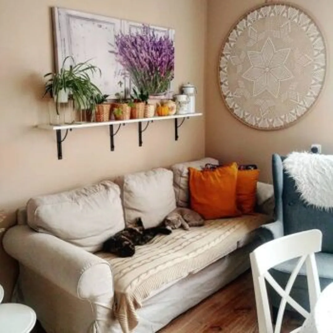Избегайте мебели на ножках. Она сделает вашу комнату слишком открытой и просторной. Мебель также будет выглядеть более скудной на вид, и даже возможно, слишком неприкрытой. Ищите диван с рельефными объемными подушками, но не идеально обтянутый, выглядящим жестко. Он должен быть чистым и идеально стильным, а также достаточно удобным, вызывающим желание у людей присесть на него отдохнуть.