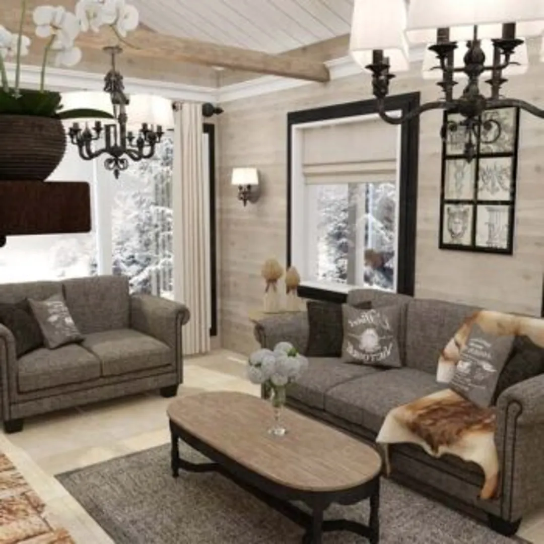 Подбираемая мебель не должна быть большой или чрезмерно набитой, также избегайте структурированного гладкого блеска обивки, как у мебели в стиле минимализм. Обычно они на ножках и имеют некоторый орнамент, например, завитки или другие детали на раме.