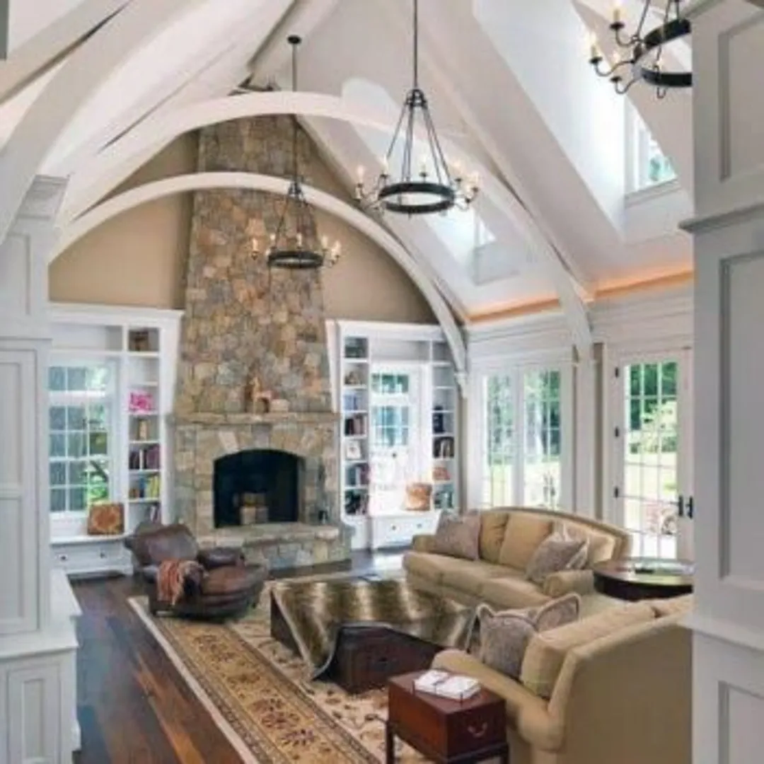В традиционных гостиных всегда присутствует камин. Обычно они располагаются либо в центре главной стены, либо в качестве углового камина. Если вас интересует традиционная гостиная, то проще всего создать формальной пространство. Выберите расстановку мебели, включающую винтажный диван и два кресла с журнальным столиком между ними. Вам также понадобится большой коврик с традиционным узором, например, в восточном варианте.