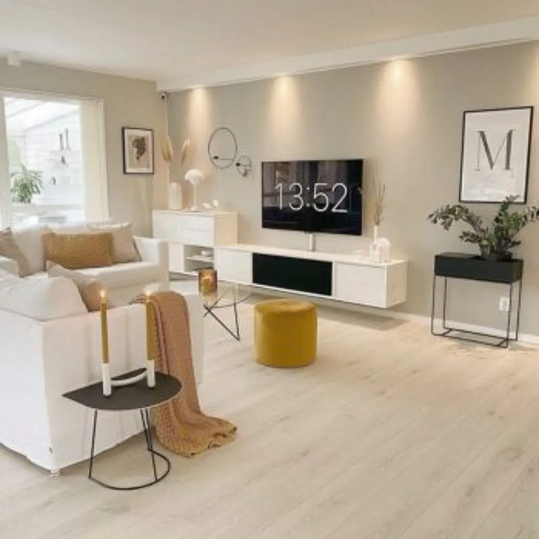 Мебель поможет сохранить нейтральную цветовую схему. В связи с этим многие предпочитают белую гостиную. Вы можете сочетать с оттенками белого, кремового и хаки. Эти нейтральные цвета позволят вашей гостиной выглядеть ярче, светлее и наполнят свежестью – все это популярно в современных гостиных.