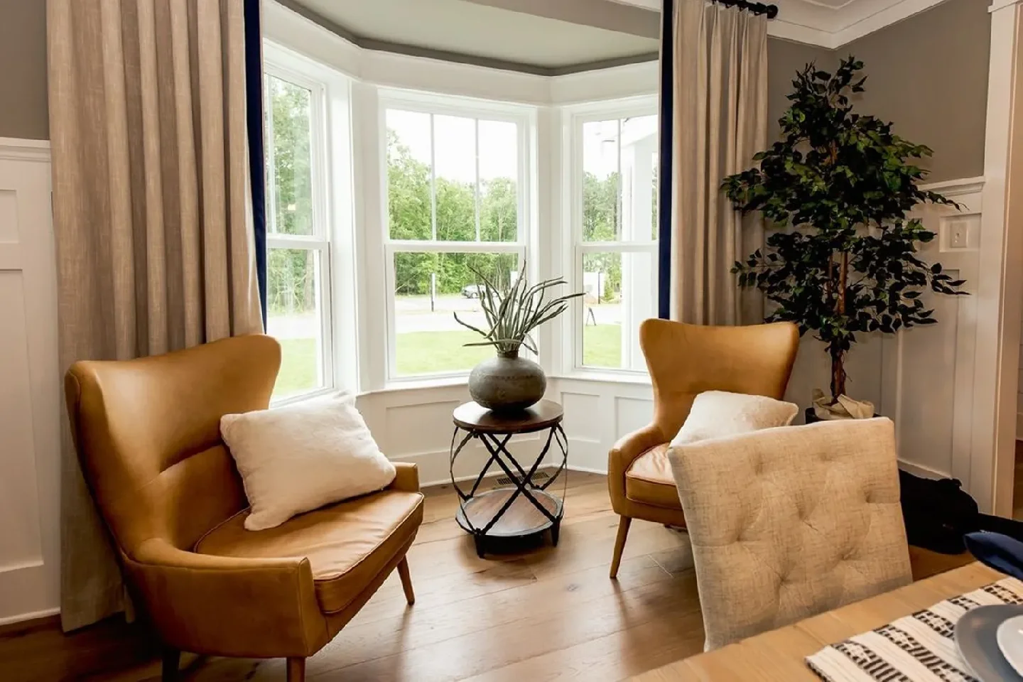 Если в вашей гостиной имеется уголок с эркером, то это шанс оживить, возможно, забытую часть вашей формальной комнаты. Воспользуйтесь естественным светом, проникающим из эркера, с помощью высоких штор, подходящих по цвету к дизайну гостиной. Если вы решили использовать затемненные шторы, убедитесь, что подобрали теплоизолированные модели, способные регулировать жаркую или холодную погоду, проникающую через окна и оконные стекла.