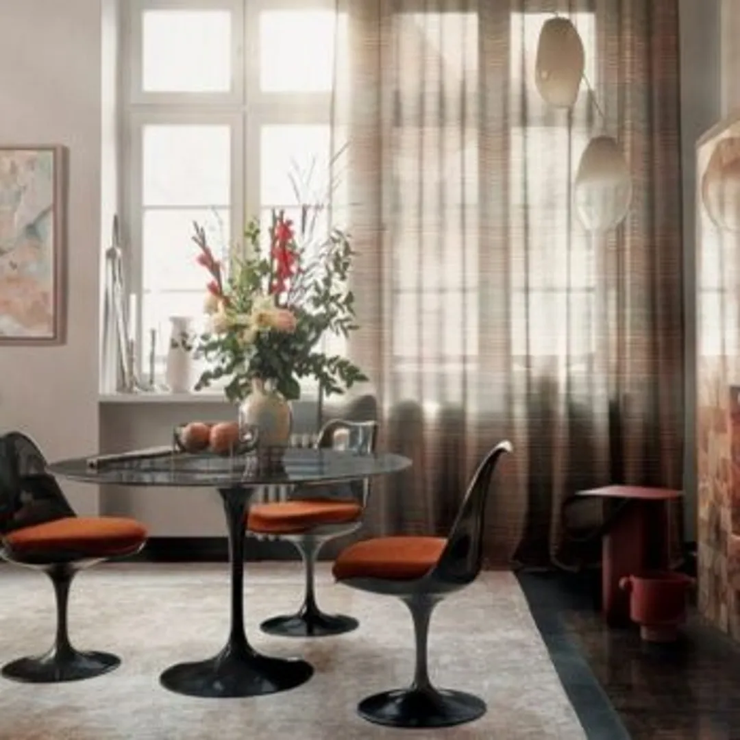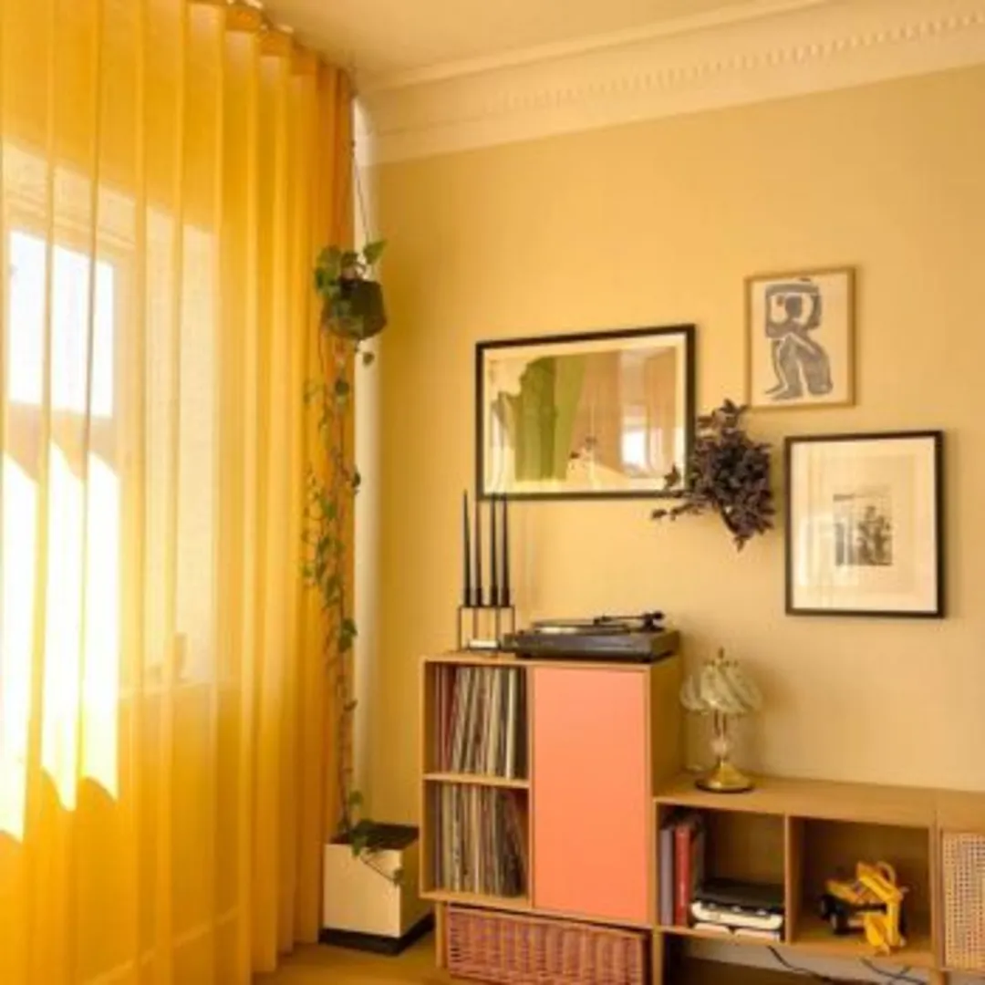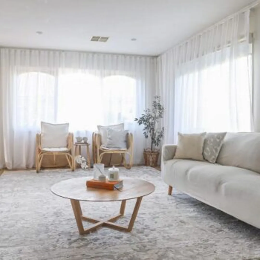 Пусть такое сочетание вдохновит вас на использование двух разных фактур и цветов во всей комнате. Акриловый журнальный столик или белый ковер дополнят прозрачные занавески. Выбрав подушки и диван того же цвета, что и яркие или темные шторы, вы можете превратить это пространство в элегантную гостиную, переполненную различными текстурами и оптимально подобранными деталями.