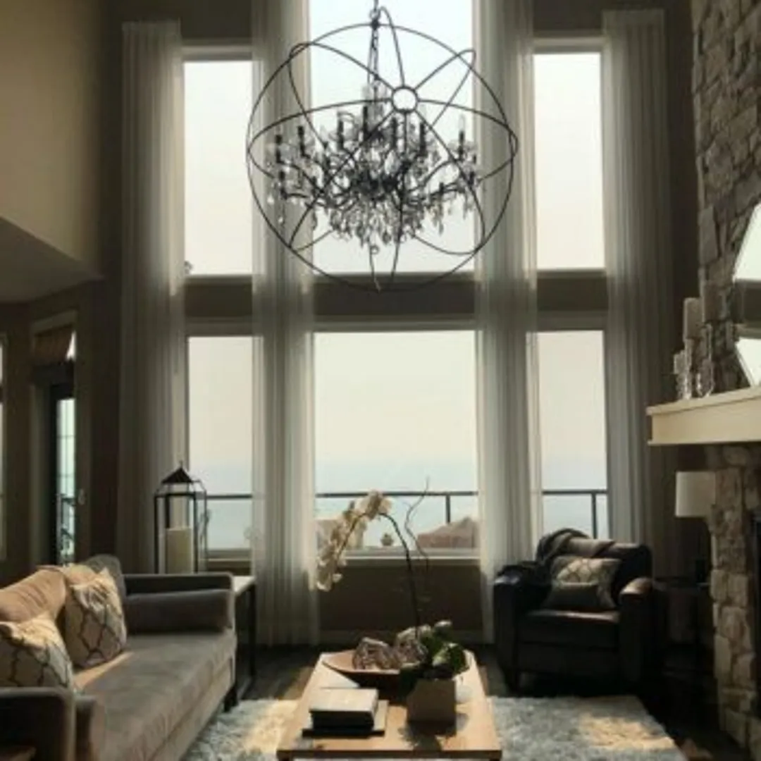Обязательно выбирайте шторы, легко трансформирующиеся в аксессуар для вашей гостиной, поскольку вам, скорее всего часто придется их открывать, чтобы посмотреть на пейзаж за окном.