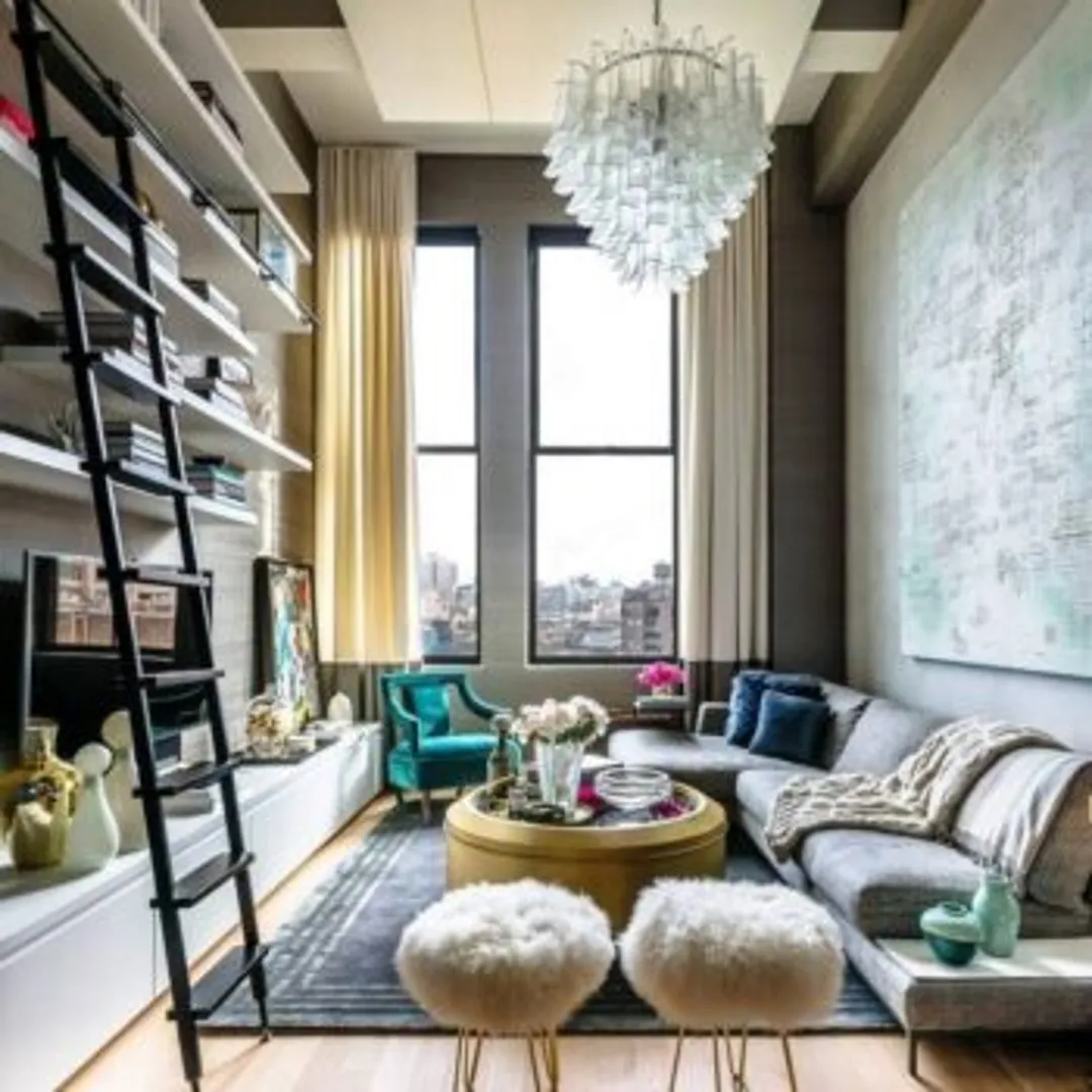 Гардины способны заявить о себе, но также можно использовать шторы и жалюзи. Если вы придерживаетесь минималистского стиля, воспользуйтесь шторами-аккордеонами или римскими шторами, чтобы приглушить свет, проникающий через окно гостиной.
