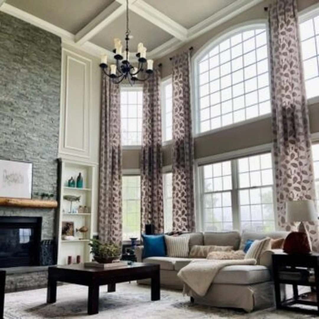 В процессе поиска идей для гостиной с высокими окнами важно предварительно измерить высоту оконных проемов. Измеряют от верха, где будет находиться штанга, до низа оконной рамы. Это необходимо для реализации в полную силу эффектного вида, который придадут гостиной ваши шторы.