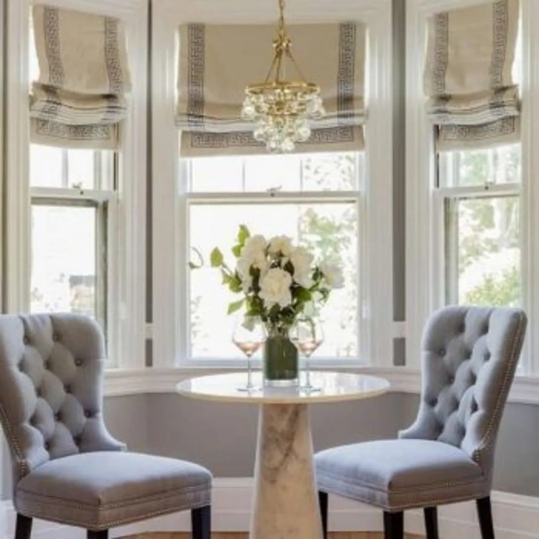 Для придания дополнительного объема окнам приобретите в магазине римскую штору. Если у вас бежевые стены, используйте аналогичный бежевый тон, чтобы сделать их более заметными.