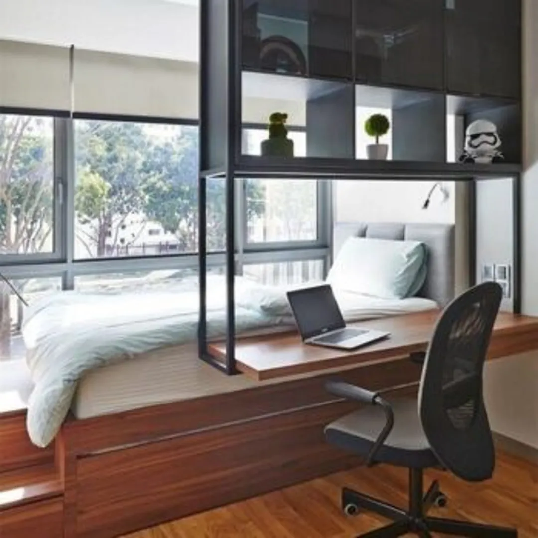Конечно, если вы используете свою маленькую спальню в качестве кабинета или семейной комнаты, сама кровать может быть убрана. Для экономии места рассмотрите вариант кровати-трансформера.
