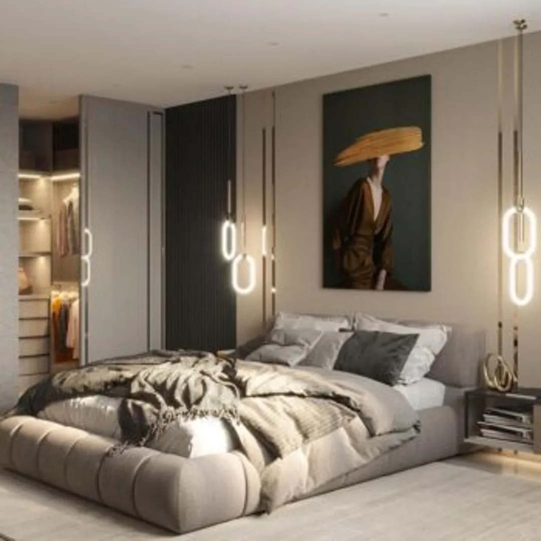 Подвесные светильники помогут сэкономить пространство на стенах и полу, сделать комнату ярче и придать ей элегантный и современный вид. Если вы создаете помещение в стиле Модерн, добавьте несколько декоративных элементов, но главное – минимализм. Не переусердствуйте, иначе комната будет выглядеть загроможденной.