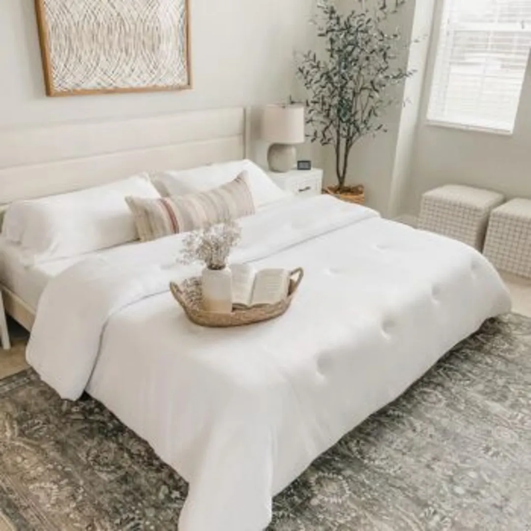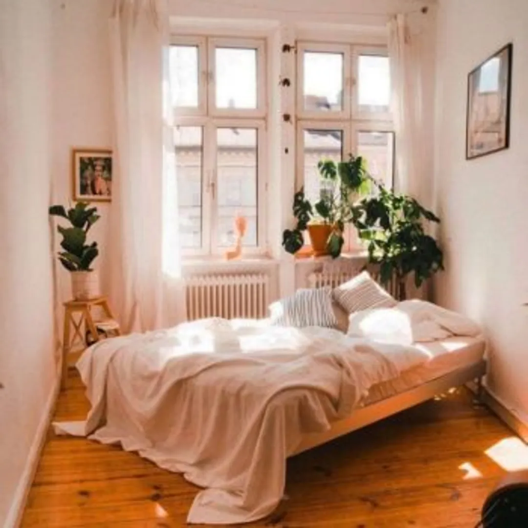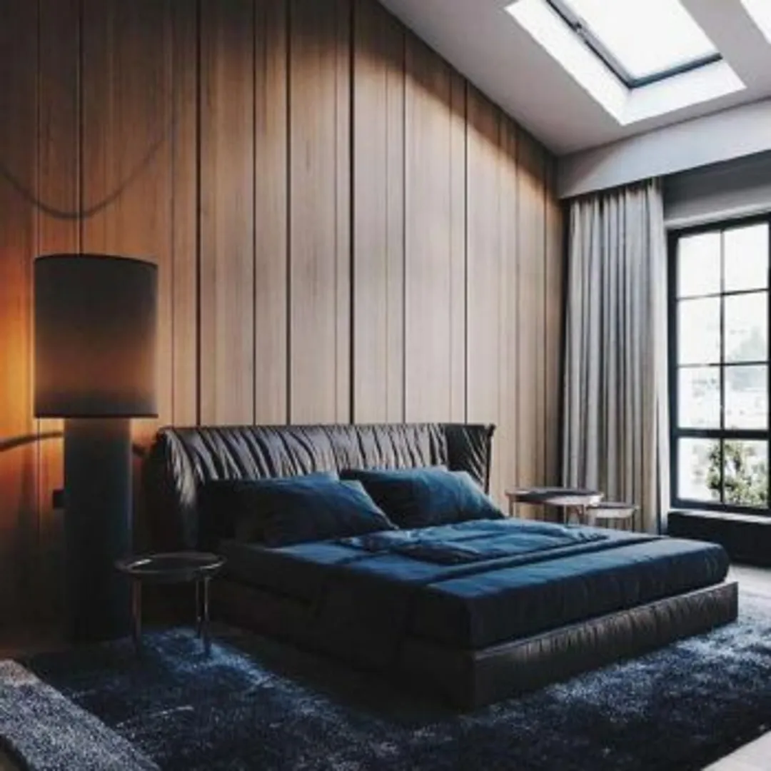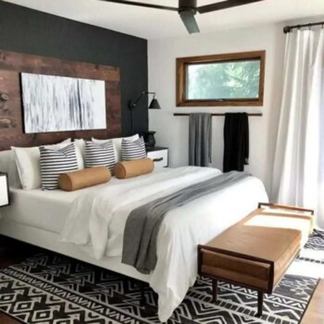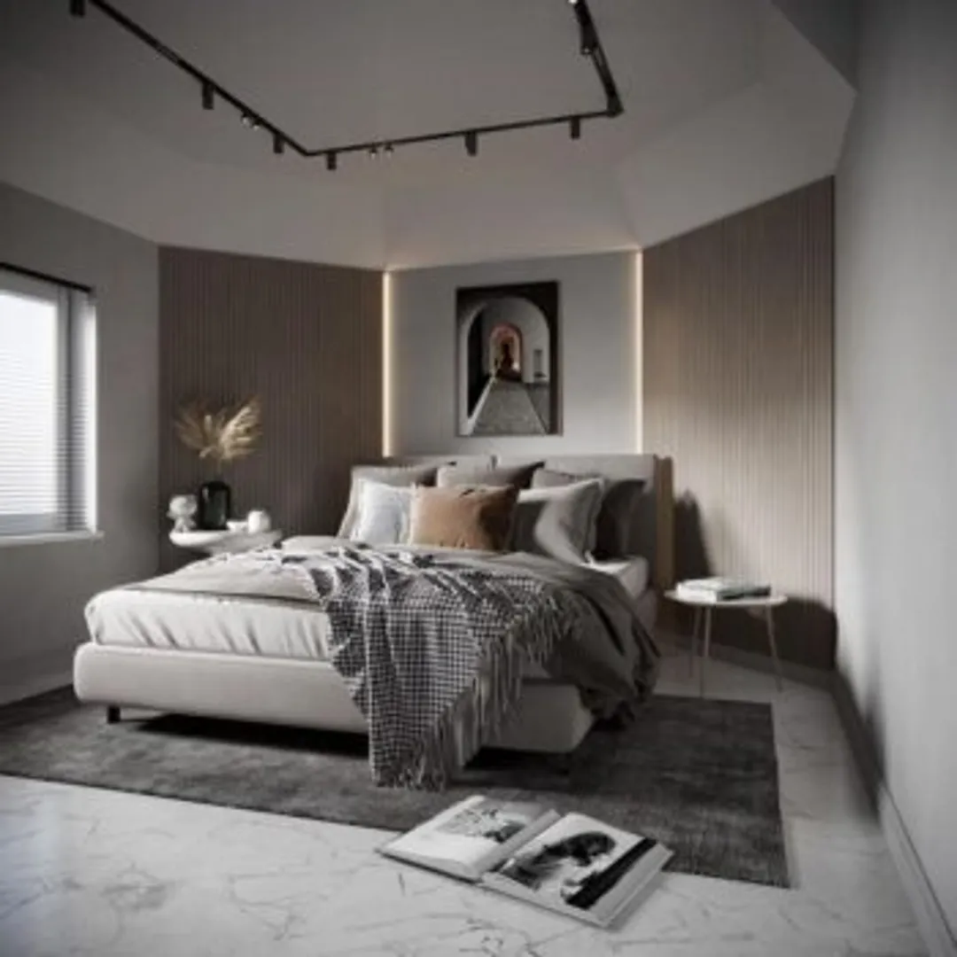 Стиль располагает к использованию монохроматических или нейтральных цветовых схем. Они идеально подходят для маленькой спальни, объединяя пространство, заставляя его выглядеть больше, чем оно есть на самом деле. Кроме того, можно вмонтировать книжные полки от пола до потолка или платяной шкаф, который будет выглядеть чисто и современно, а также предоставит вам дополнительное место для хранения.
