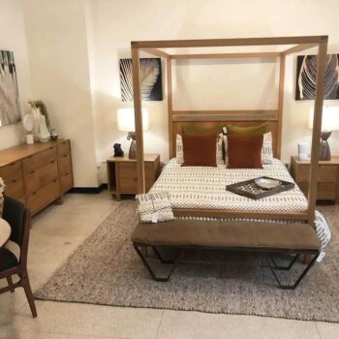 Для гармоничного образа с помощью мебели, выбирайте предметы одного цвета и материала, чтобы они сочетались между собой. Кроме того, каждый предмет мебели должен иметь несколько назначений. Это значит, что нужно выбирать кровати со встроенными ящиками или ночные столики с выдвижными ящиками.