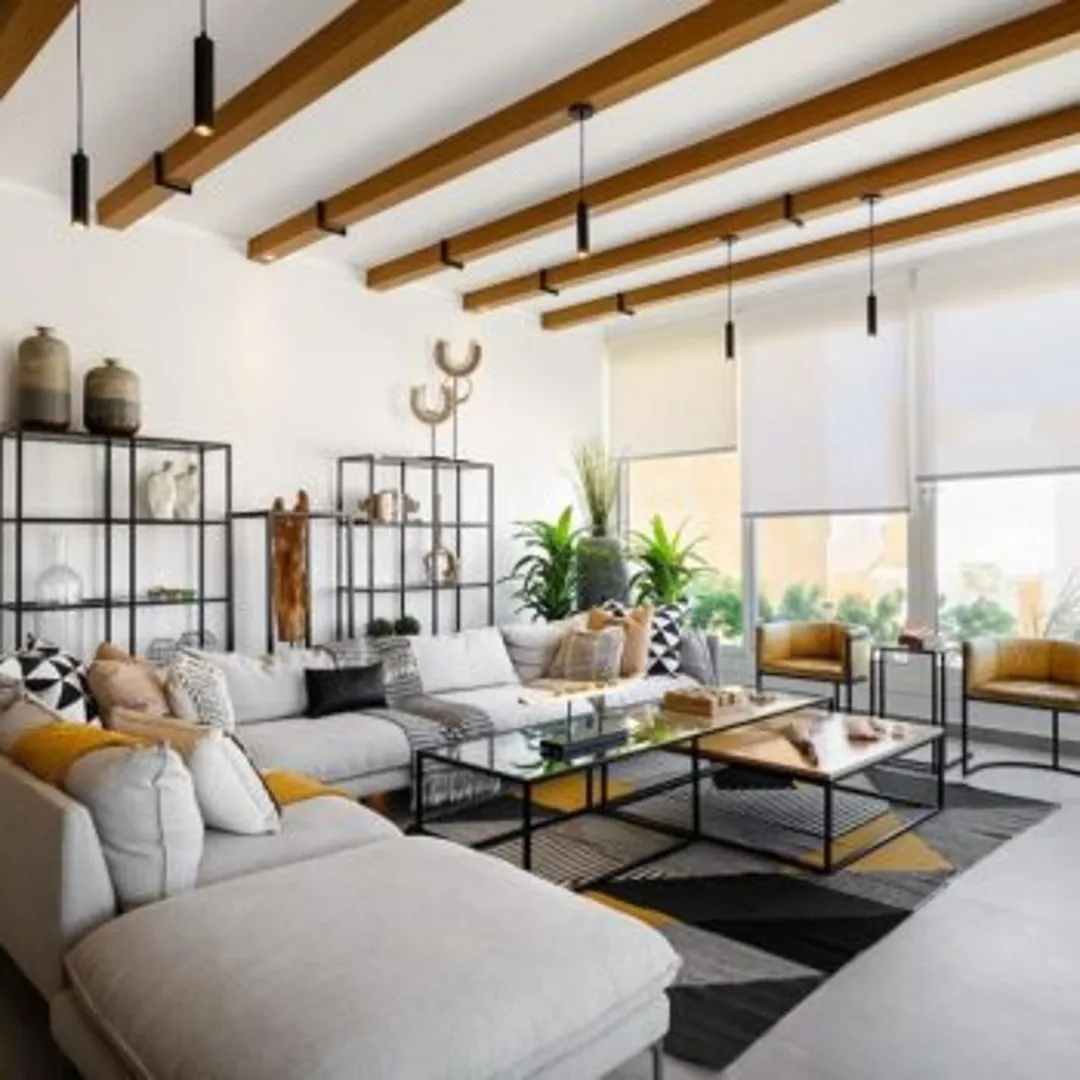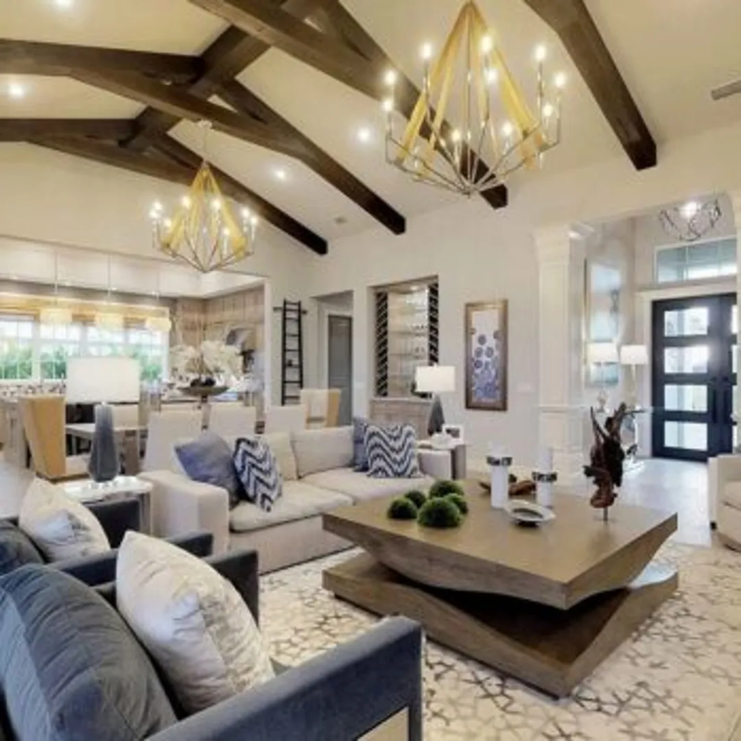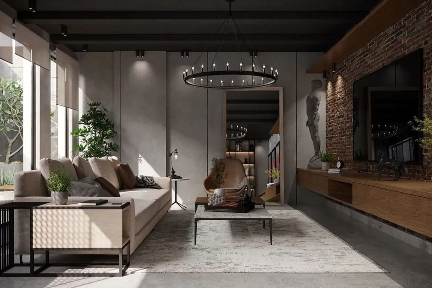 В некоторых случаях комната кажется большой из-за высокого потолка. Хотя это желательный признак, он может лишить комнату уюта. Один из способов исправить это ощущение – опустить пониже люстру. Более низкий уровень опустит пространство без ущерба для высоты потолка. Еще одни способ заполнить пространство большой комнаты – сформировать высоту. Сделать это можно с помощью высокого декоративного горшка с растениями или с комнатным деревом. Также можно рассмотреть большой, эффектный торшер.