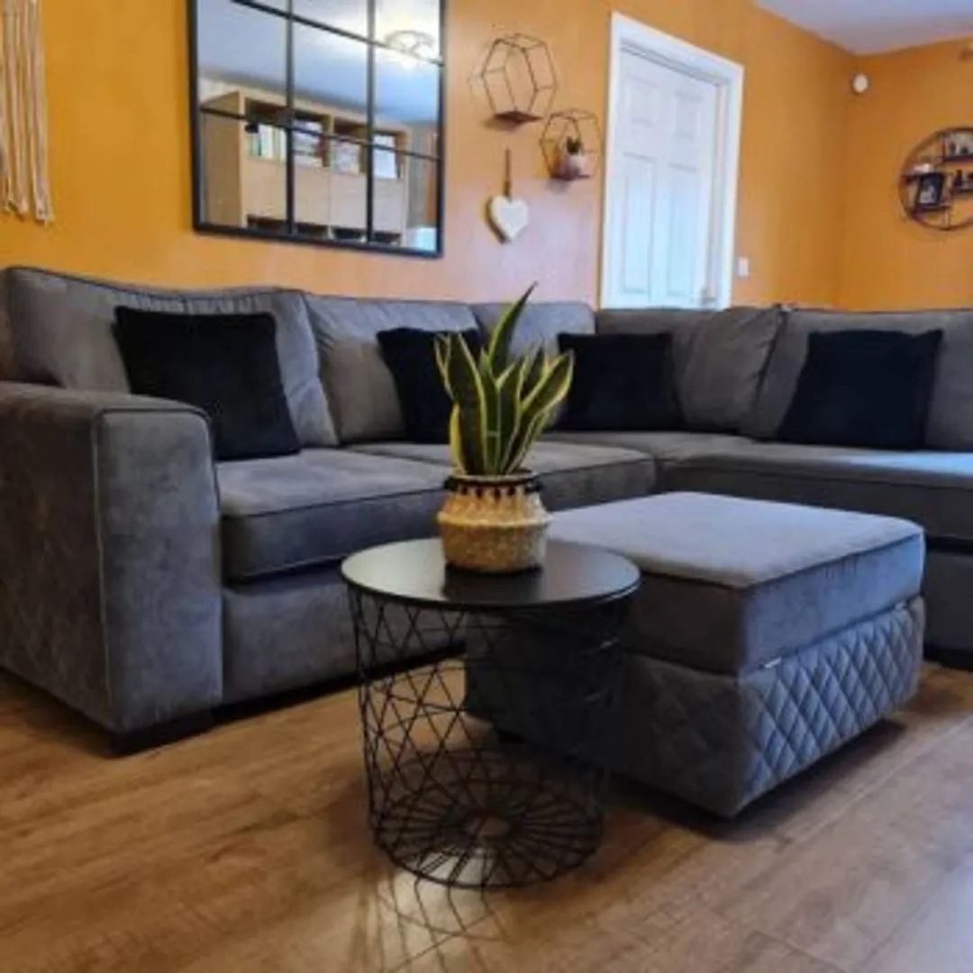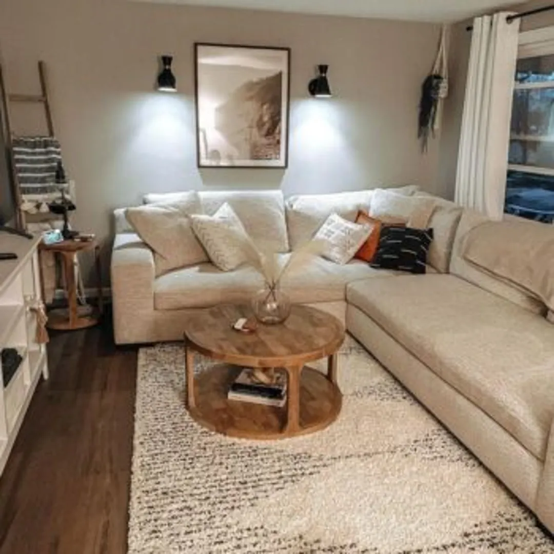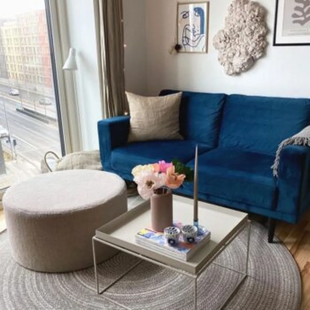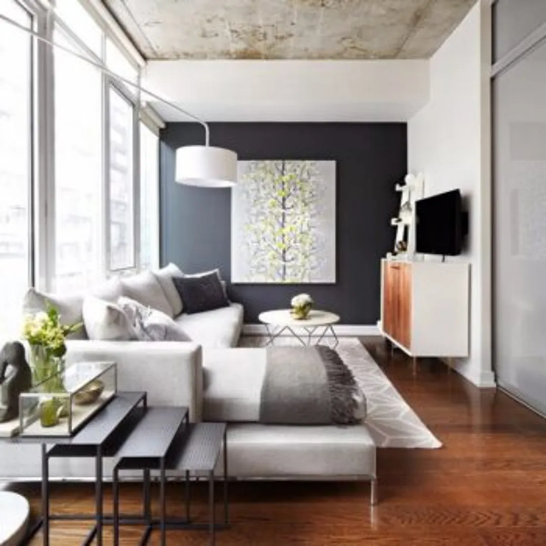 Начните с подбора мебели, подходящей по масштабу. Измерьте пространство, намеченное для дивана, и выберите такой, чтобы поместился. Подбирайте мебель, которая не будет выглядеть громоздкой. Это значит – предпочесть диван современного вида, а не мягкий, набитый наполнителем.