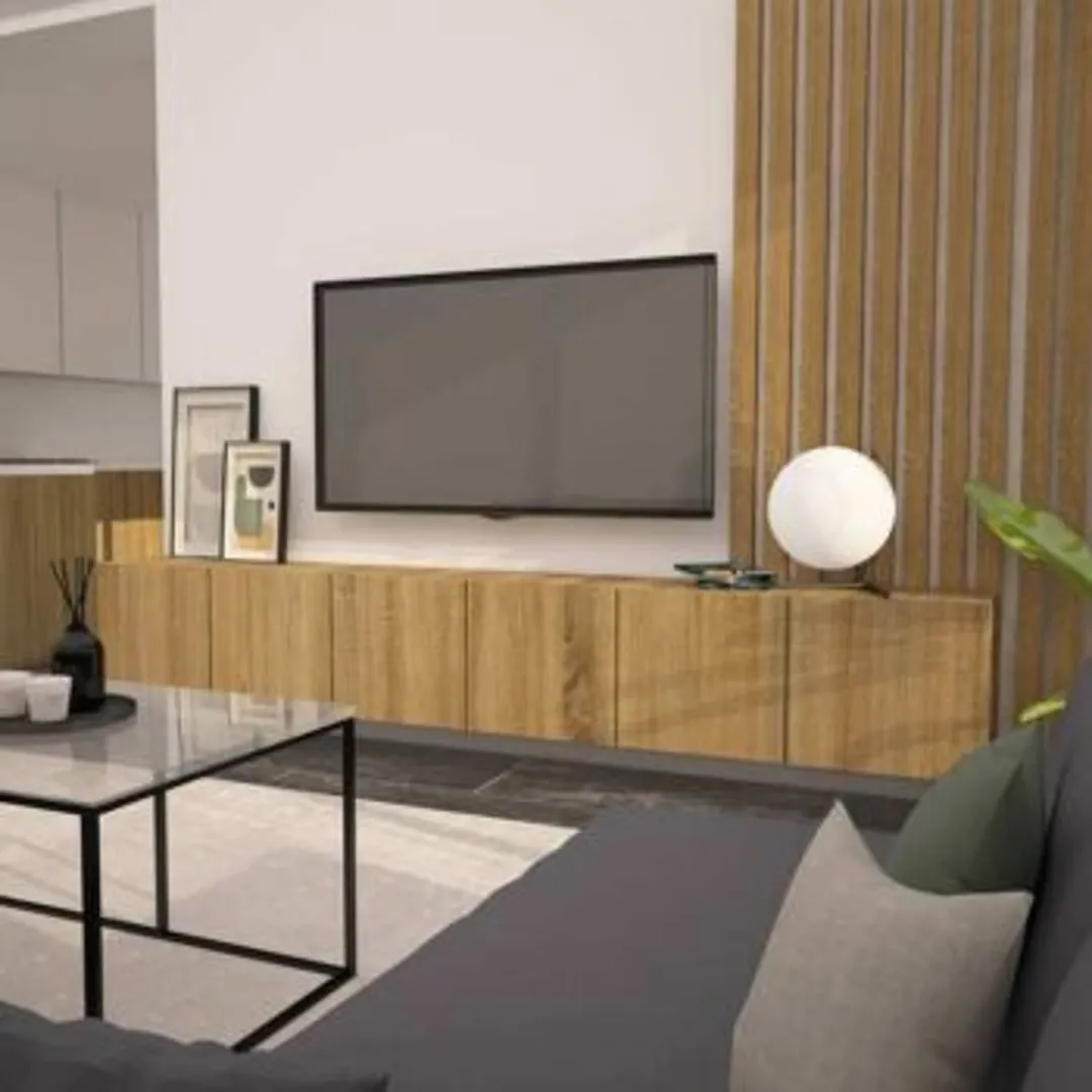 Он должен быть на ножках, расположение над полом создает ощущение простора. Так вы избежите впечатления сдавленности или переполненности пространства. Что касается других предметов, подбирайте их так, чтобы они не загораживали обзор – открытые столики, тумбочки.
