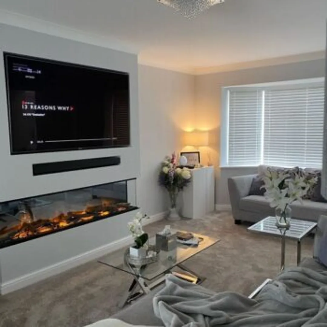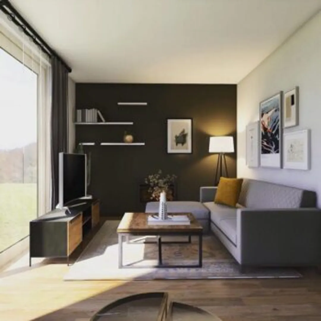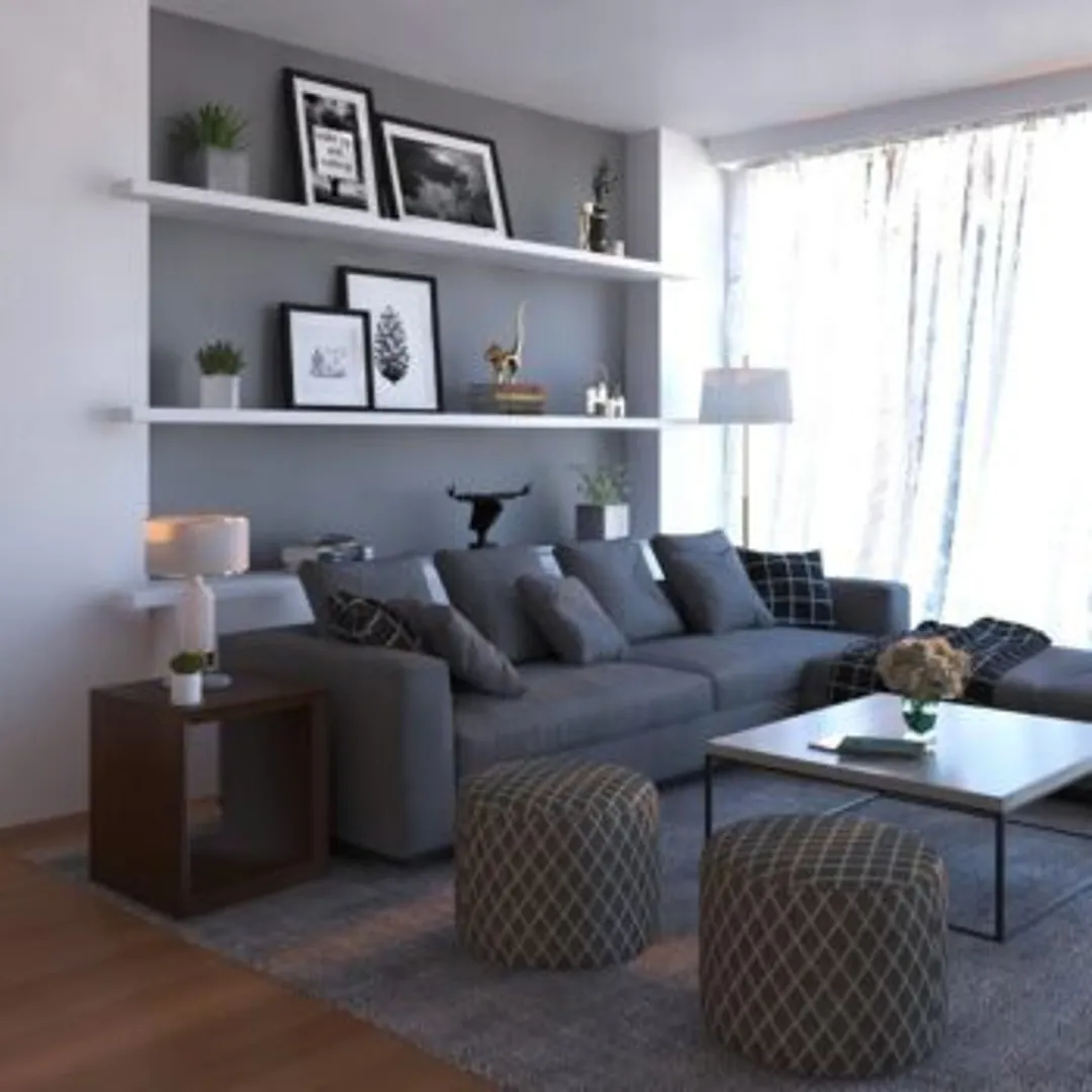 Имейте в виду, что если фокусная точка находится на короткой стене, то зона, в которой расположены сиденья, может показаться загроможденной. Из-за этого комната может оказаться поделенной надвое, поэтому запланируйте поменьше мебели, чтобы она спокойно вписалась в уменьшенное пространство. Можно поместить приставной столик у задней части софы, чтобы отделить и обозначить пространство. Этот добавочный столик также предоставит вам дополнительное скрытое место для хранения чего-либо.