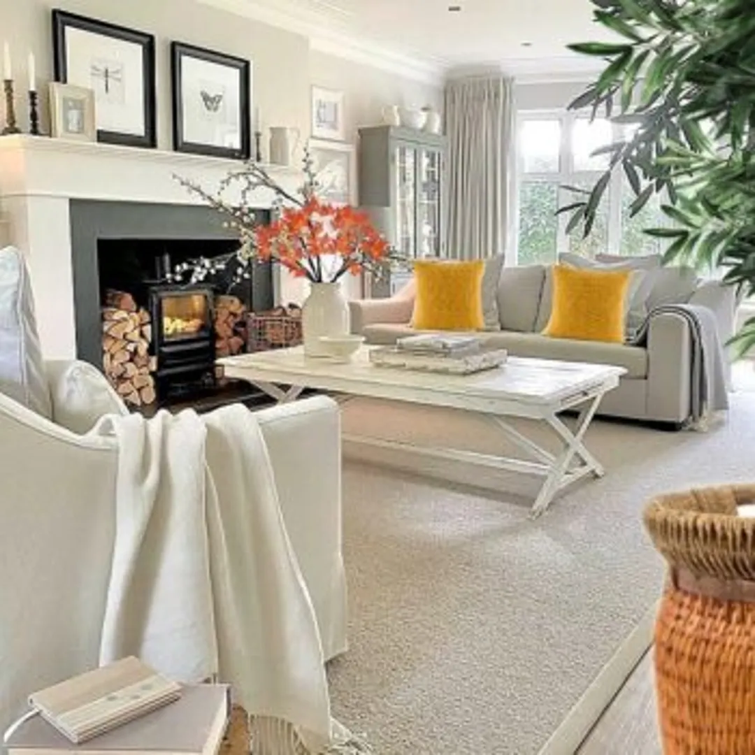 Если в вашей гостиной имеется камин, то это естественная фокусная точка комнаты. Простой, естественный пункт, вокруг которого можно выстраивать комнату. В большинстве продолговатых помещений камин располагается или на короткой стене, или в середине длинной.