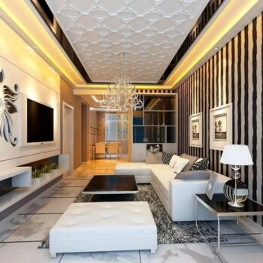 Обдумывая оформление гостиной, учитывайте стиль пространства. Пусть дополнением к стульям и креслам послужит декор. Обычное, уютное помещение отлично смотрится с несколькими семейными фото. В формальной зоне хорошо выглядит живопись или изящная скульптура. Пространство, вдохновленном минимализмом, лучше всего смотрится, если на стенах – ничего кроме необходимого минимума. Артистичный стиль предполагает наличие полок с растительностью. С помощью крупного деревца с изысканными листьями или торшера можно заполнить неудобные пустоты по углам.