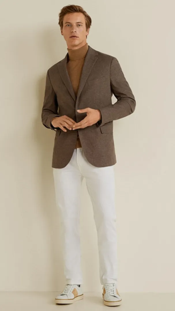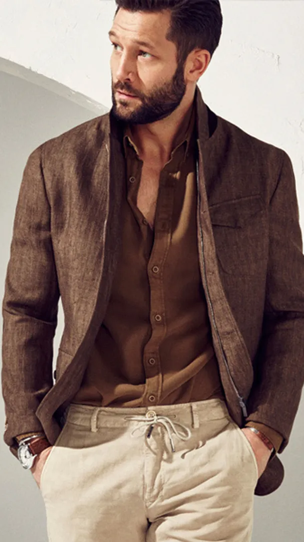 При выборе нового блейзера ваши привычные цвета, скорее всего, будут выглядеть примерно так: черный, темно-синий, серый или, если вы действительно чувствуете себя сумасшедшим, немного бежевый. Однако, исключая коричневый, вы лишаете себя возможности начать экспериментировать на совершенно новом уровне беззаботности. Коричневый крой излучает ауру непринужденной прохлады, которую обычные пошивы никогда не смогут воспроизвести.