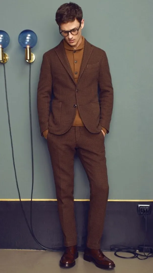 Коричневый теплый и удивительно гармоничный. Дружит с широким спектром цветов и прекрасно сочетается с другими тенденциями, которые в настоящее время охватывают мужскую одежду, в частности, с текстурными тканями и стилем середины прошлого века.
