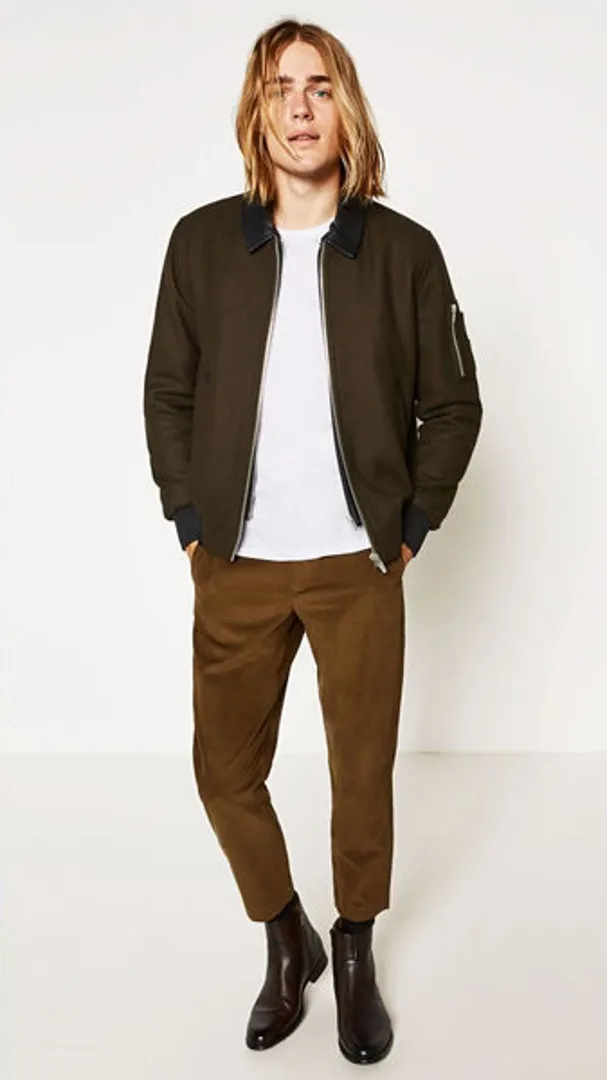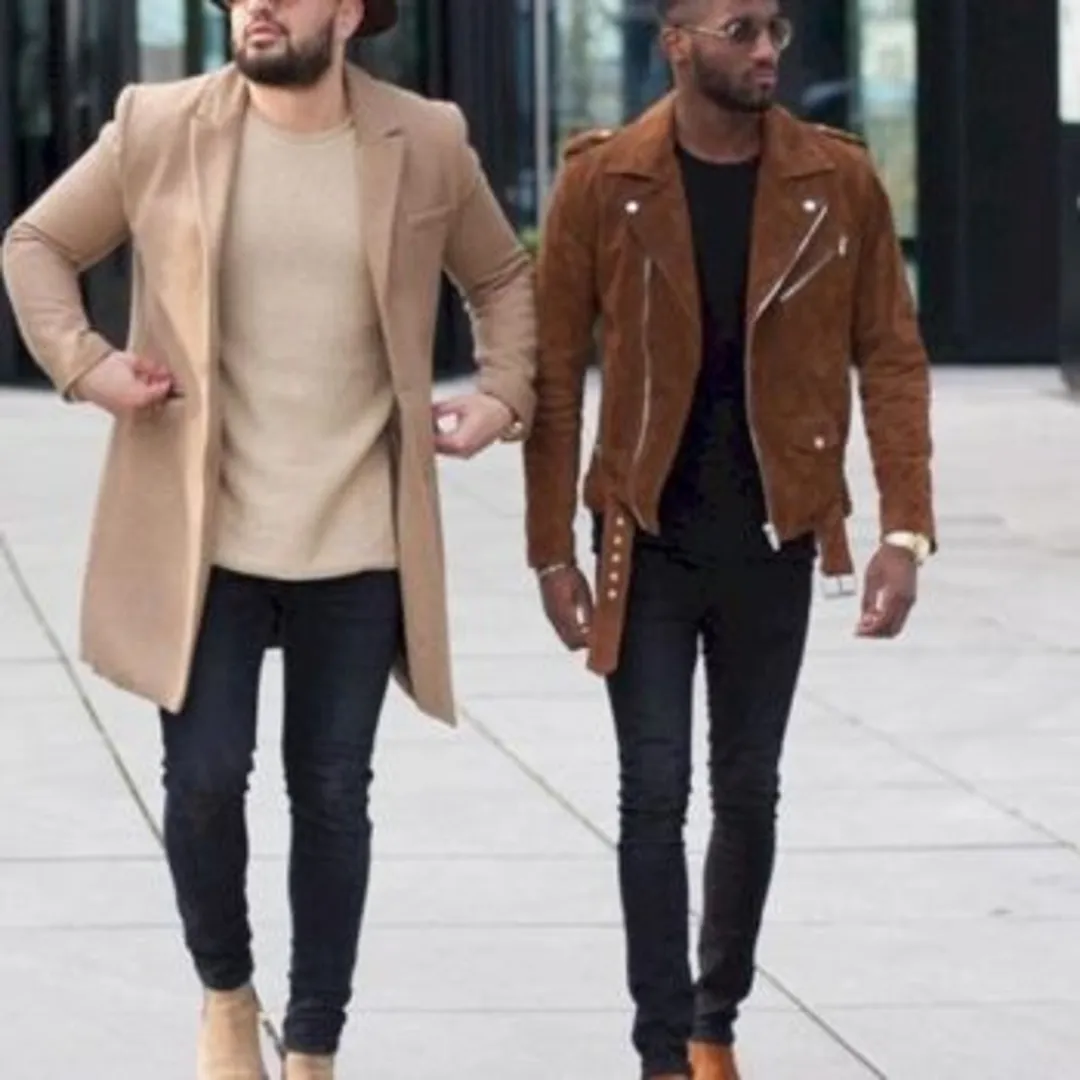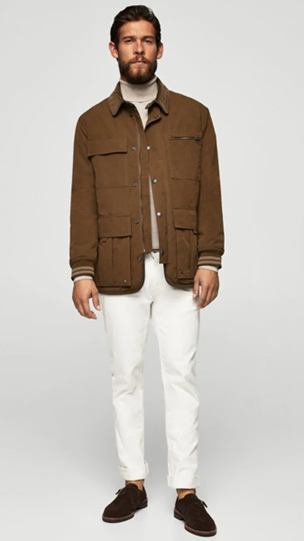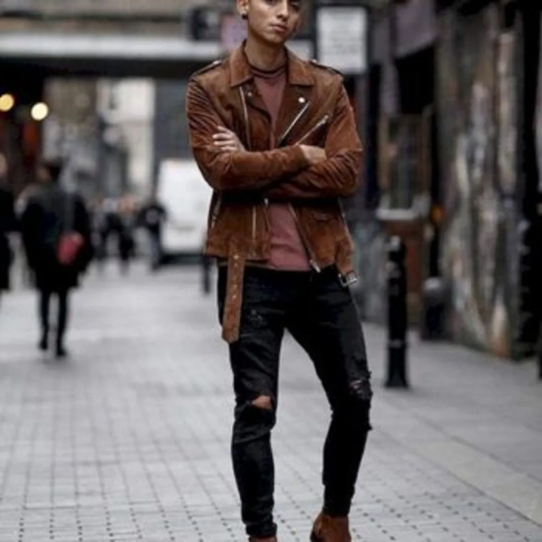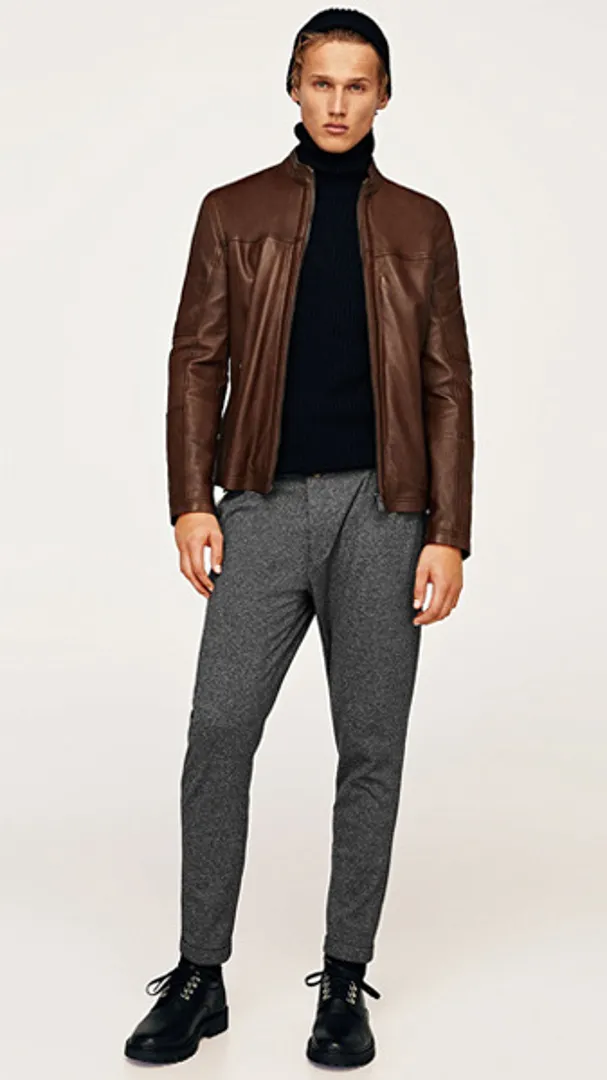 Мы уже установили, что коричневый — это идеальный цвет для игры с различными текстурами. И это утверждение одинаково подходит к курткам. Соединяя их вместе, вы можете гарантировать себе победу, будь то бомбардировщик, байкер или полевая куртка.