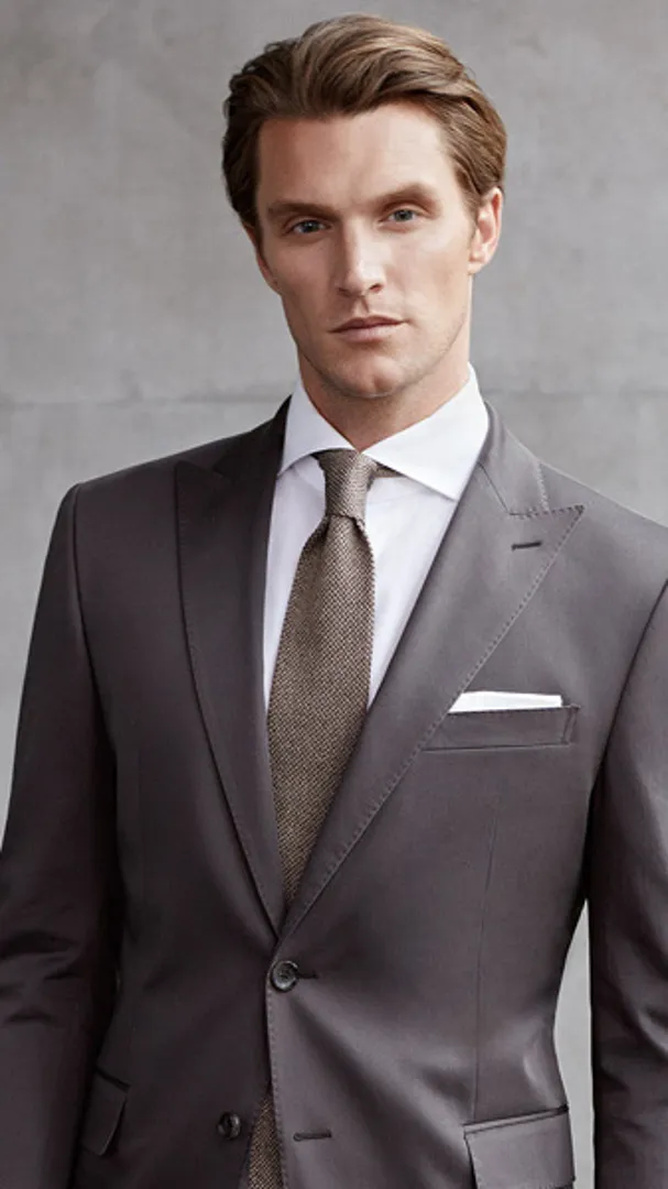 Как и в случае с пальто, вам нужно будет подобрать фасон костюма (если намереваетесь заказать у портного) и к нему оттенок, что тоже не маловажно. Если вы хотите сшить полный костюм, темно-коричневый цвет будет в наибольшей степени носимый на все случаи жизни – и это вовсе не причуда. Коричневый всегда был классическим выбором в пошиве мужской одежды. Благодаря новым способам и технологиям шитья он вновь появился среди бесчисленных серых и темно-синих костюмов, которые мужчины постоянно надевают на работу, на светские мероприятия и свадьбы. Вечный — не преувеличение? Да, он золото мужской одежды.