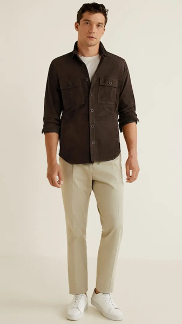 Коричневая рубашка — отличное дополнение, поскольку может работать несколькими различными способами. Во-первых, ее можно носить в одиночку, застегнутую на пуговицы, в паре с либо элегантными брюками и туфлями, либо с джинсами и кроссовками. Во-вторых, ее можно носить как расстегнутый легкий верхний слой, надетый поверх простой футболки для повседневного образа. В-третьих, ее можно носить в виде дополнительного слоя под зимним пальто и поверх водолазки. И последнее, но не менее важное, как часть тонального костюма.