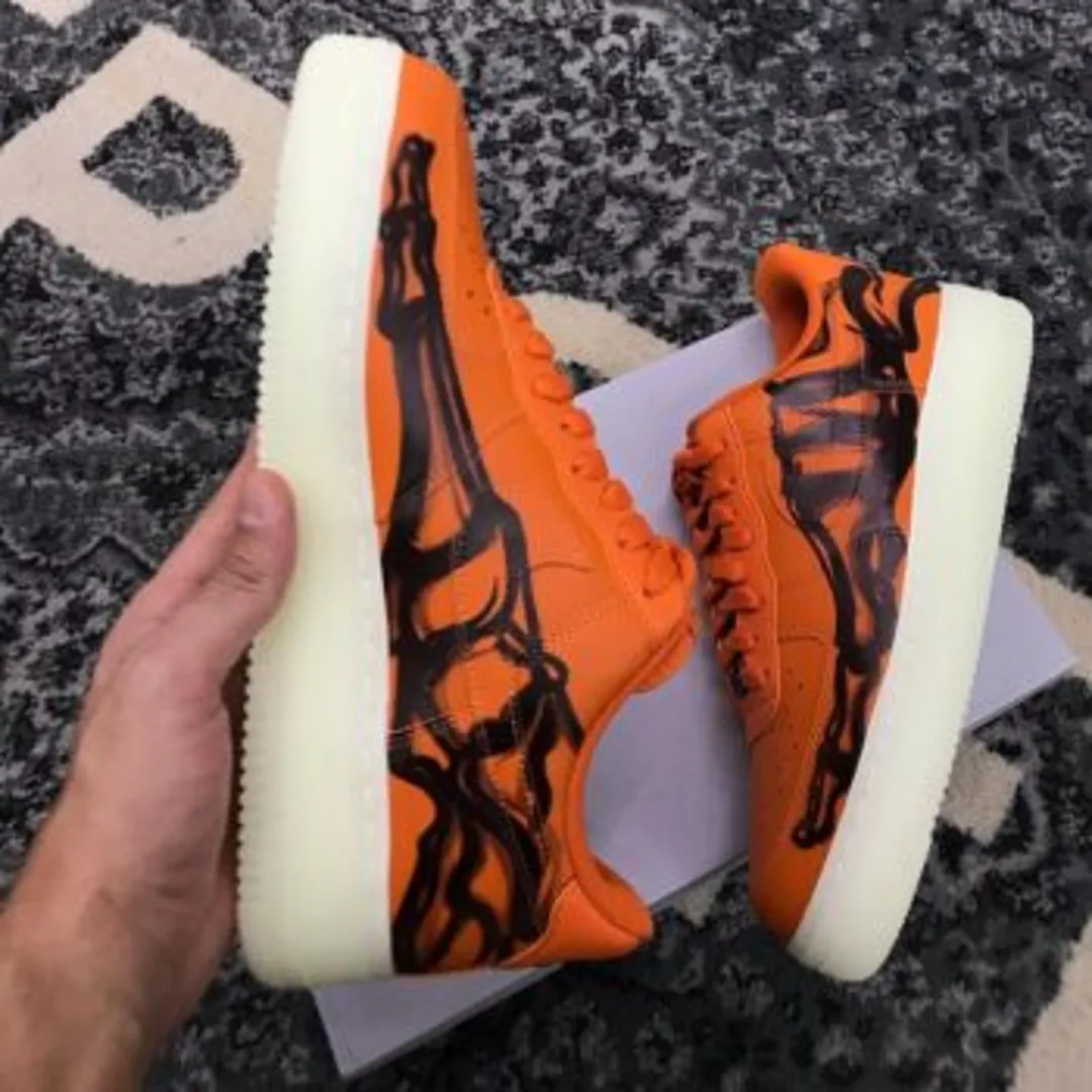 В отличие от первого появления Air Force 1 Skeleton, вариант 2020 года заменил призрачно-белые и верхние серые акценты на оранжевые и черные оттенки. Nike продолжает знакомую графику в виде стопы скелета на верхней части экстерьера, AF1 Skeleton 2020 X-Rays как рентгеновский снимок, с обоих сторон кроссовка, внутри и снаружи.